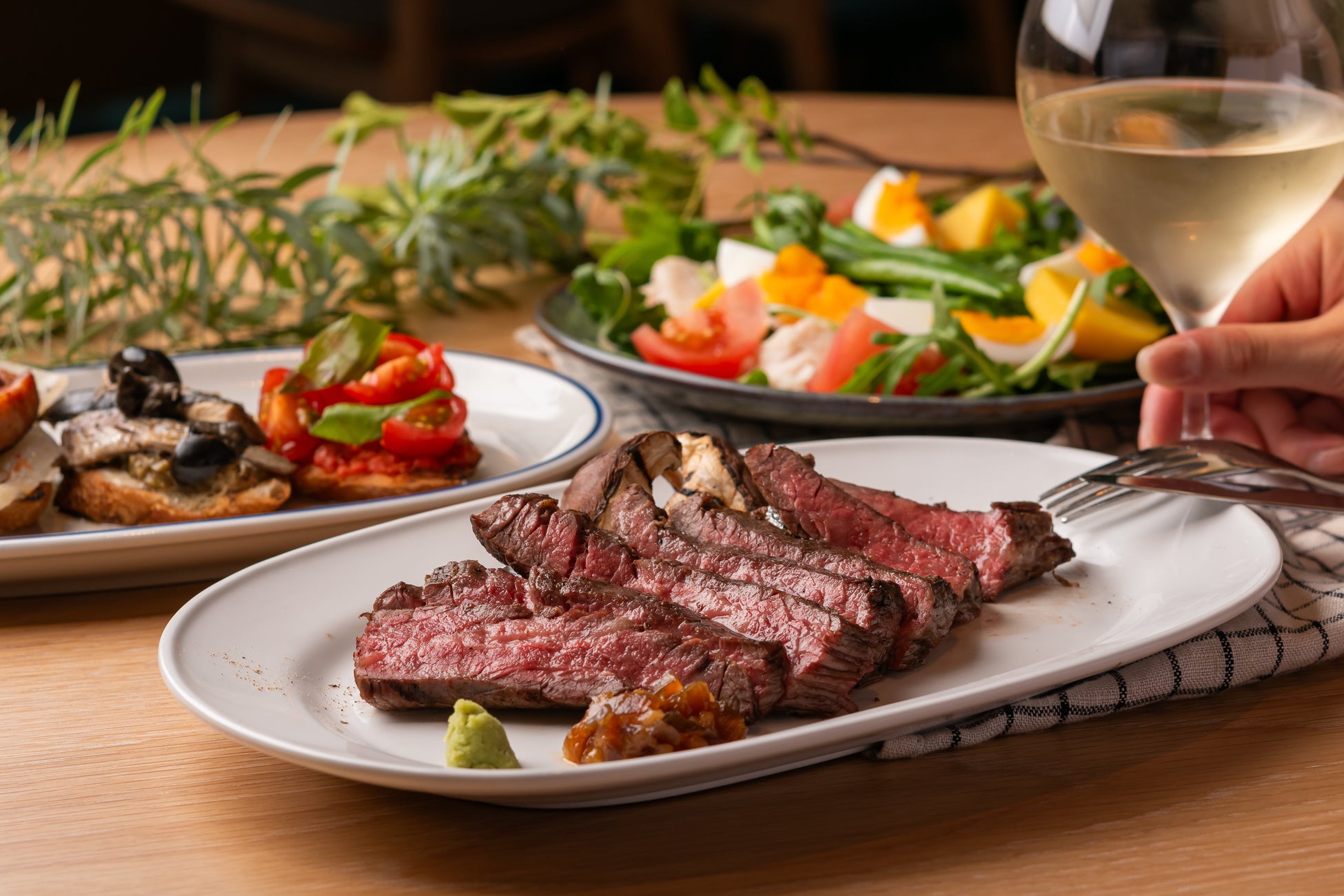 旬の食材を使用したビストロメニューから親しみやすい洋食メニュー、炭火料理などを提供し、ランチ・ディナーはもちろん、カフェ利用や、ワイン1杯からでも幅広くご利用いただけます。