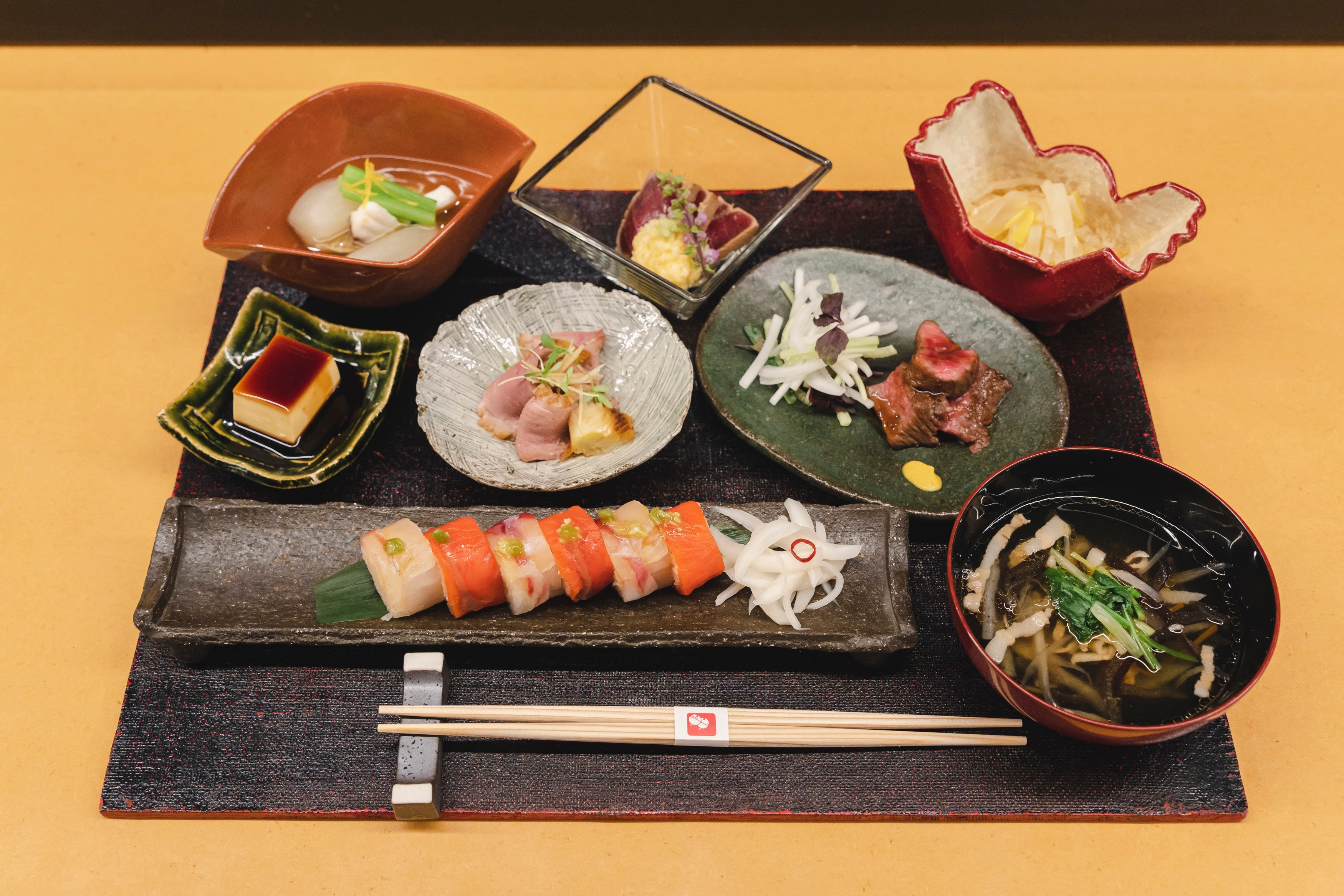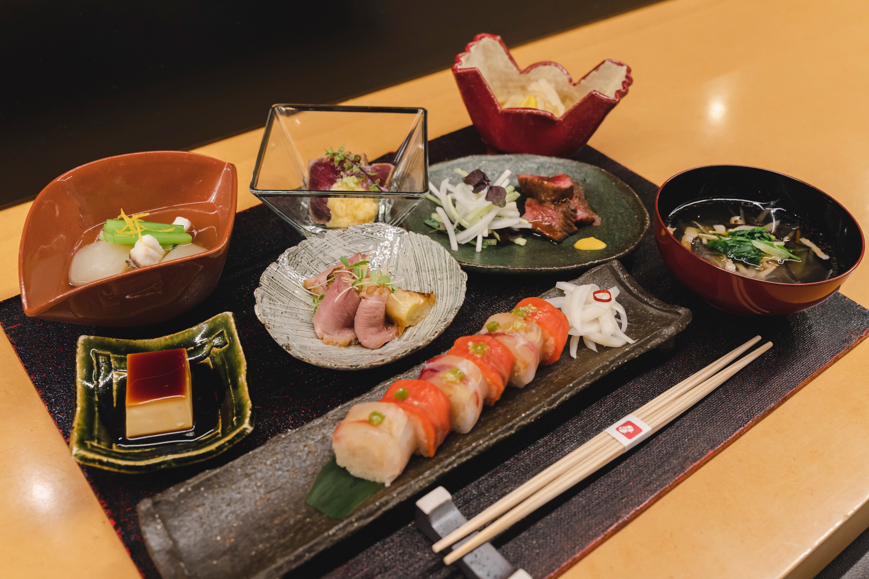 旬の食材を用いながら、「関孫六 要」の特長である和包丁をルーツとした剣型の刃先となっている切付形状を活かした繊細なお料理や、鋭い切れ味で見た目も美しく彩られたお造りをはじめとし、お肉料理から焼き物など幅広いラインアップで計8品を提供しました。
