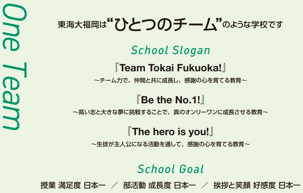 また、同校のスローガンは「チーム東海福岡」です。単なる集団ではなく、目標を共有し高め合う“チーム”としての一体感を重視しており、行事の充実や学校全体の結束力、そして「楽しい学校」であることも大きな魅力の一つとなっています。