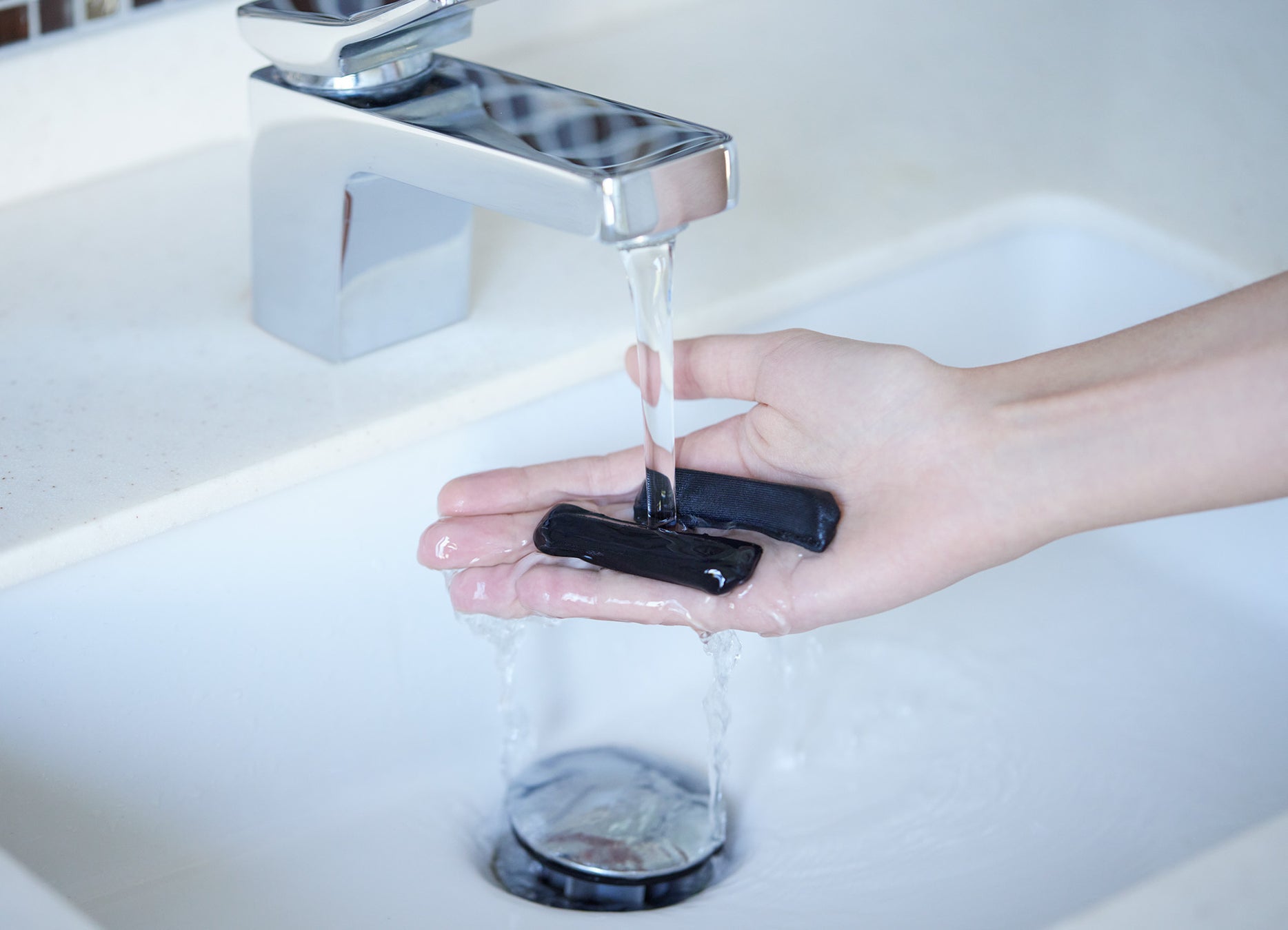 水で濡らして通電させ、使用後は本体から取り外して繰り返し洗濯することができます。