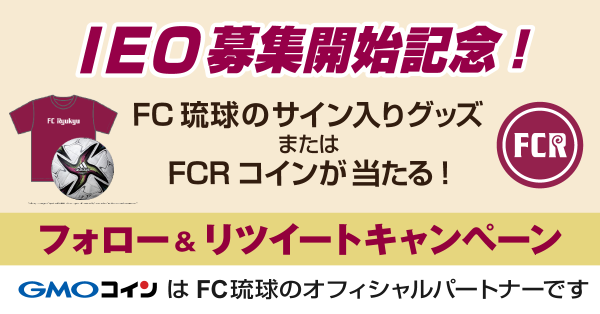 またFC琉球のIEO実施を記念して、FCRコイン(FCR)またはFC琉球のサイン入りグッズが当たるフォロー&リツイートキャンペーンを開催いたします。