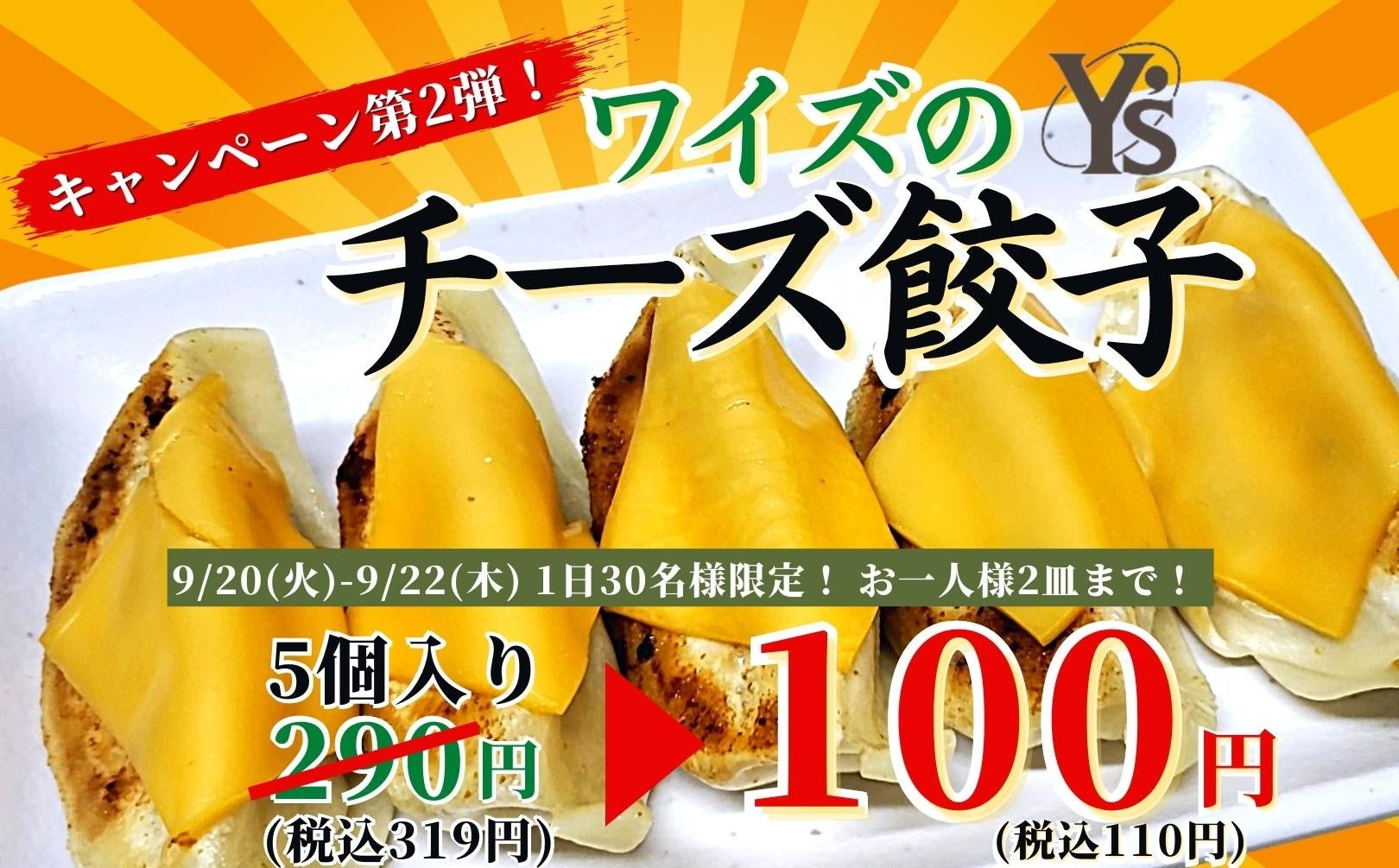 【1日30名様限定!餃子キャンペーン第2弾!】新宿駅近“ワイズ 新宿エステック店”にて『チーズ餃子』が新登場!更に!9/22(木)迄の大特価!お一人様2皿迄『1皿100円(税込110円)』にてご提供!