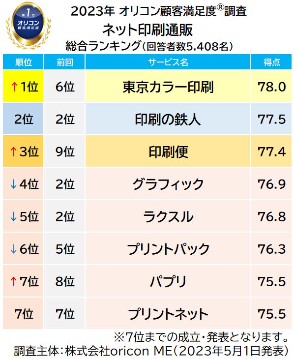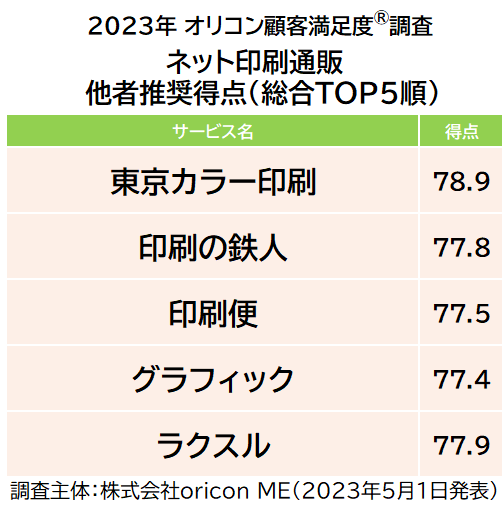満足度の高い『ネット印刷通販』ランキング┃【東京カラー印刷】が2018年以来、2度目の総合1位