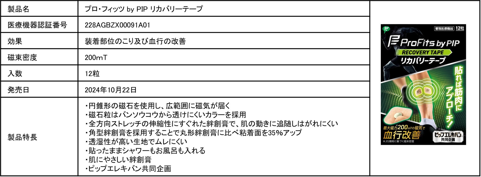 2024年10月発売の新商品「プロ・フィッツ by PIP リカバリーテープ」