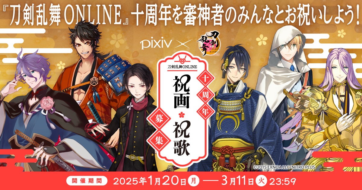 ピクシブ株式会社(本社:東京都渋谷区、代表取締役CEO:丹羽康弘、以下ピクシブ)は、PCゲーム&スマホアプリ『刀剣乱舞ONLINE』の十周年を記念して、『刀剣乱舞ONLINE』とコラボキャンペーンを開催。「pixiv×刀剣乱舞ONLINE 十周年記念企画」を2025年1月20日(月)より実施いたします。