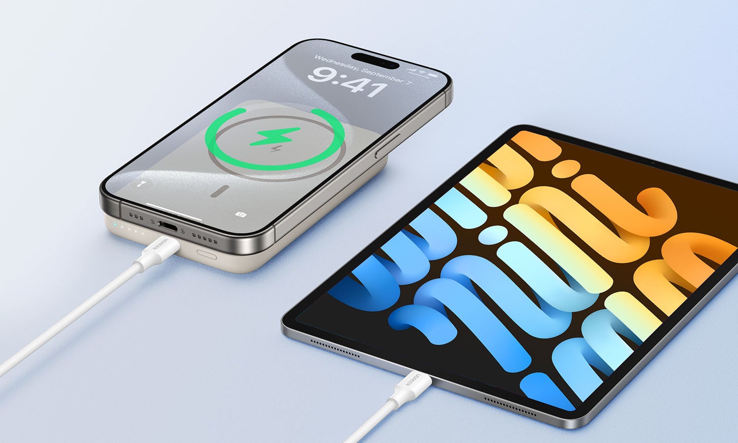 約10Nの超強力吸着マグネットを採用した15Wワイヤレス充電、USB-C to USB-Cケーブル付き