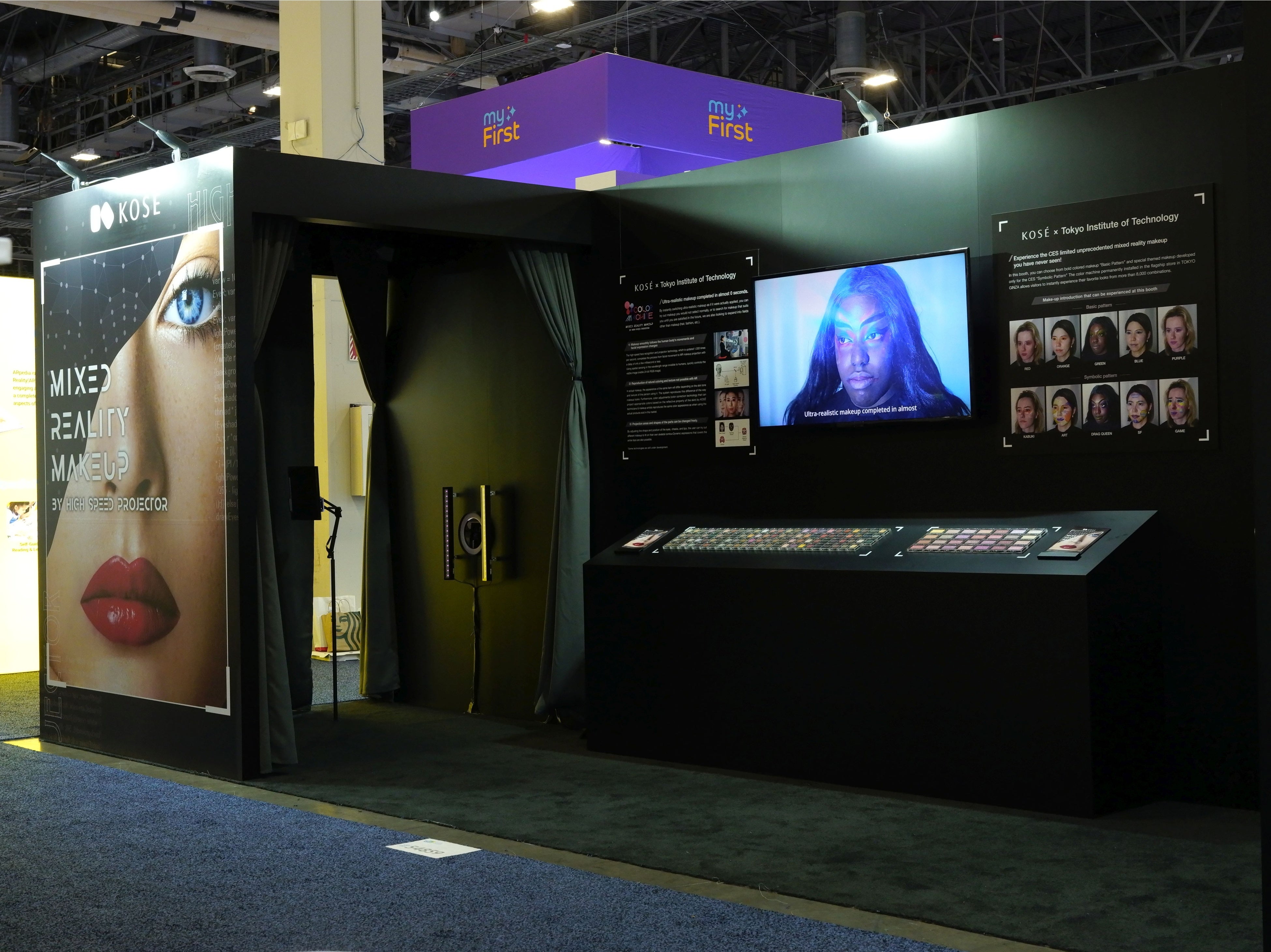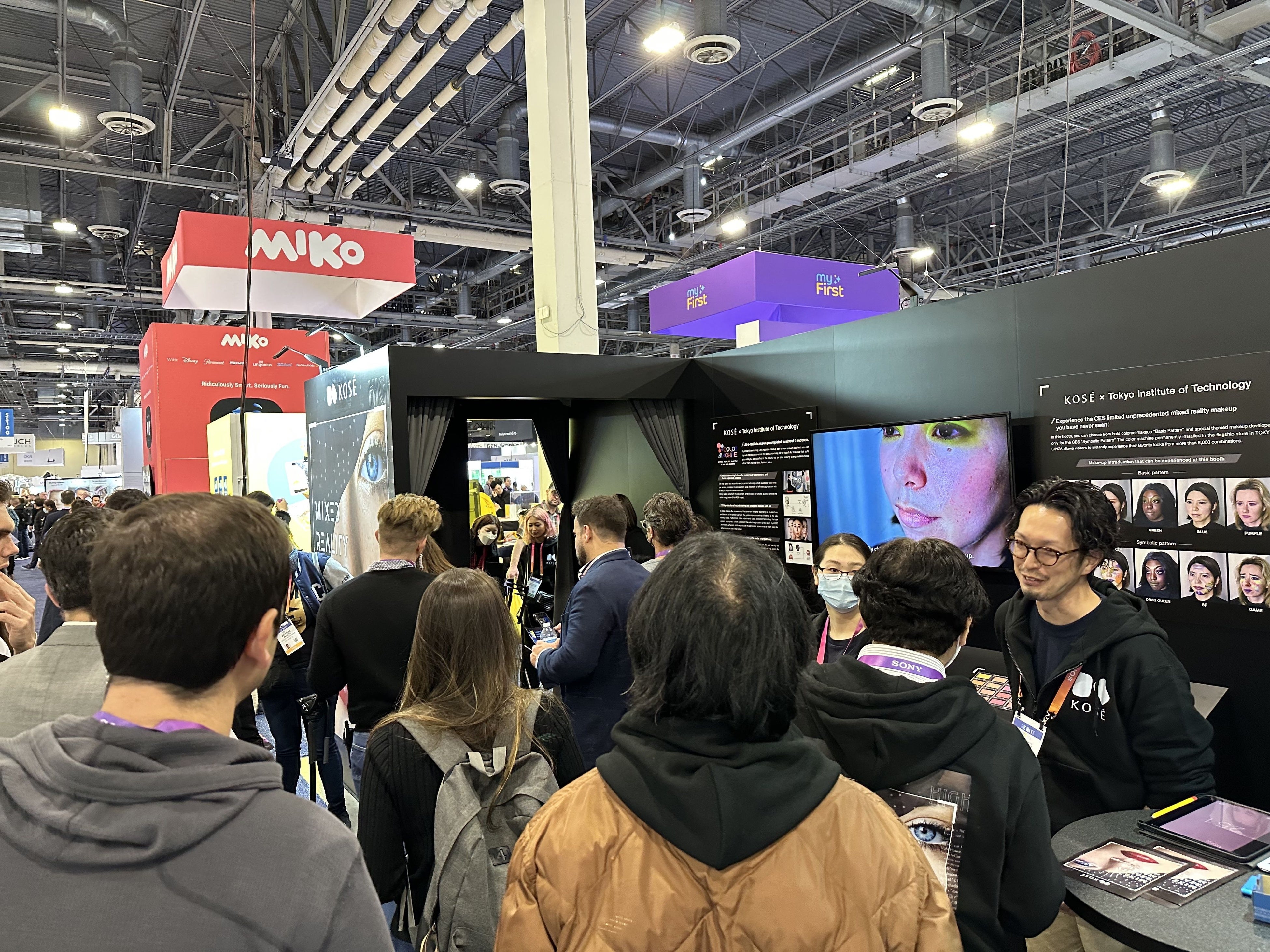 株式会社コーセー(本社:東京都中央区、代表取締役社長:小林 一俊)は、2023年1月5日~8日にアメリカ・ラスベガスにて開催された世界最大級のテクノロジー見本市「CES 2023」に初出展しました。本出展は東京工業大学 工学院情報通信系 渡辺義浩研究室と協同したもので、2022年8月からコンセプトストア Maison KOSÉ 銀座にて展開している高速プロジェクションマッピング技術(※1)を用いたメイクシミュレーション「MIXED REALITY MAKEUP」による複合現実(※2)なメイク体験を提供しました。当ブースはのべ1,200名を超える来場者を迎え、体験者からは多くの驚きや好評が得られました。