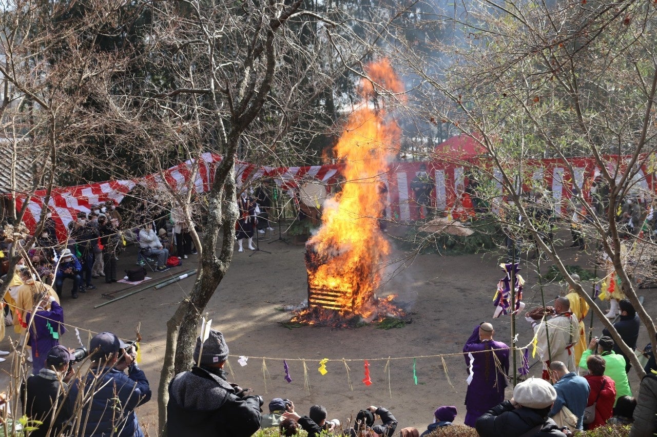 新年の無病息災・家内安全などを願う「初観音(はつかんのん)・柴燈護摩供火渡り(さいとうごまくひわたり)」。ヒノキの枝が燃え落ちた後の灰の上を裸足で歩き、一年の息災と幸福を祈る行事です。仏の「知恵の火」によって煩悩を焼き尽くしてしまうという意味も込められています。
