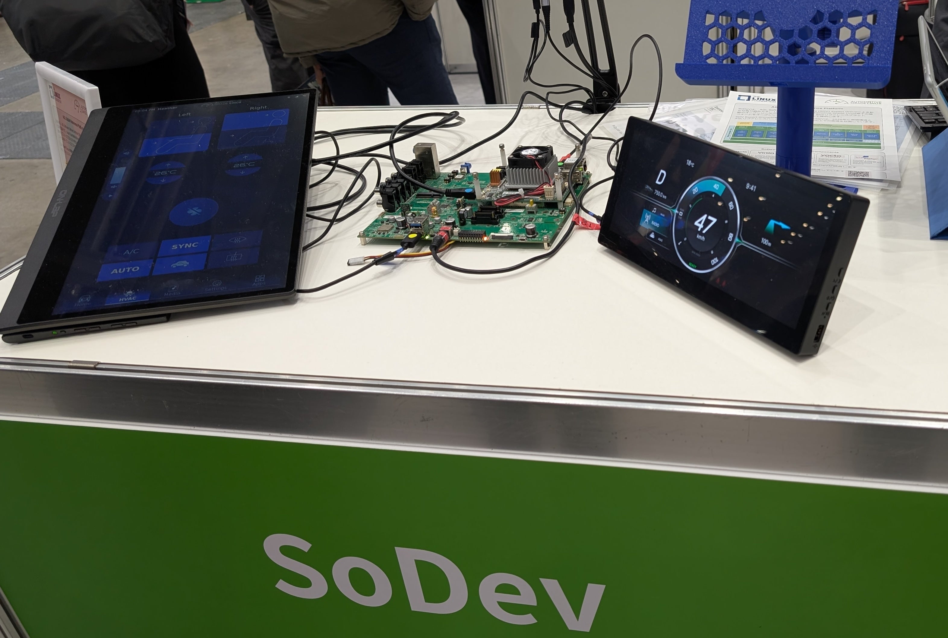 今回の展示では、開発中のSoDeVや次世代SoCをベースにした最新技術を体験できる実機デモと、AGLベースで製品化されたシステムの実機デモを通じて、自動車業界に向けてAGLの開発成果をアピールしました。ソフトウェアをいかに迅速に移植・実装できるかを実機デモで実証し、自動車メーカーやサプライヤーに対してソフトウェアファーストの開発アプローチを訴求しました。さらに、Raspberry Pi、Rockchip、RISC-Vなど多様なSoC/ボードを用いたデモも展示し、AGLが幅広いSoCに適用可能であることをアピールしました。
