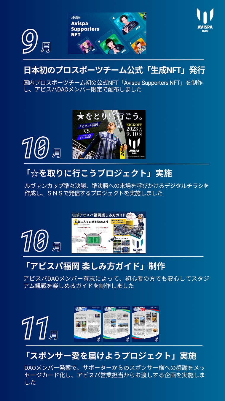 ・アビスパ福岡スポーツイノベーションDAO活動内容まとめサイト:https://www.notion.so/DAO-d4f968db1d0d4c02bec02f99e1a85513