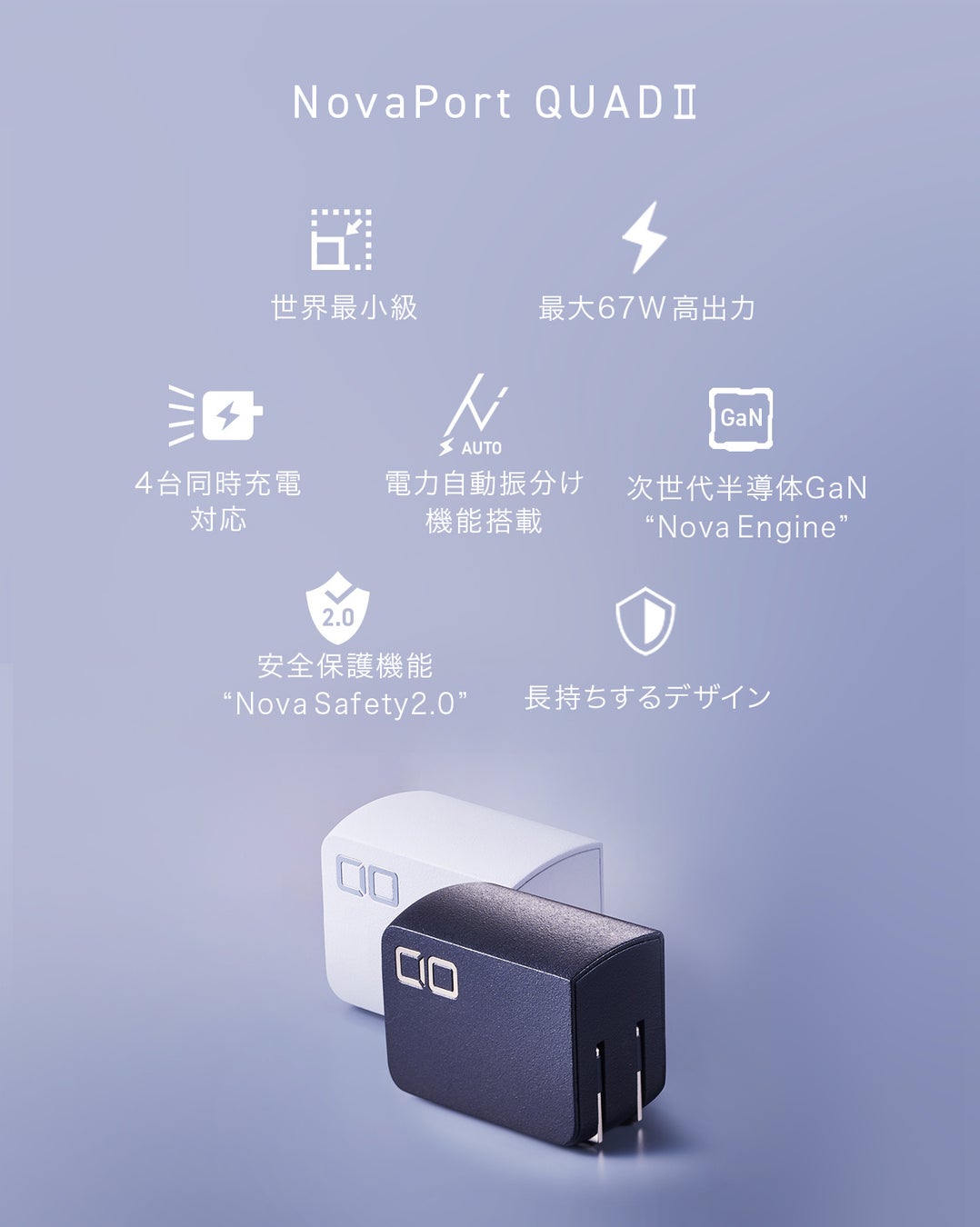 『最大67W対応4ポート搭載世界最小級充電器“NovaPort QUAD2”』