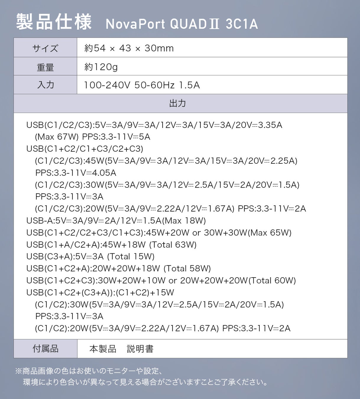 NovaPort QUADⅡはあらゆるデバイスへ充電可能な単ポート67W出力に対応。
