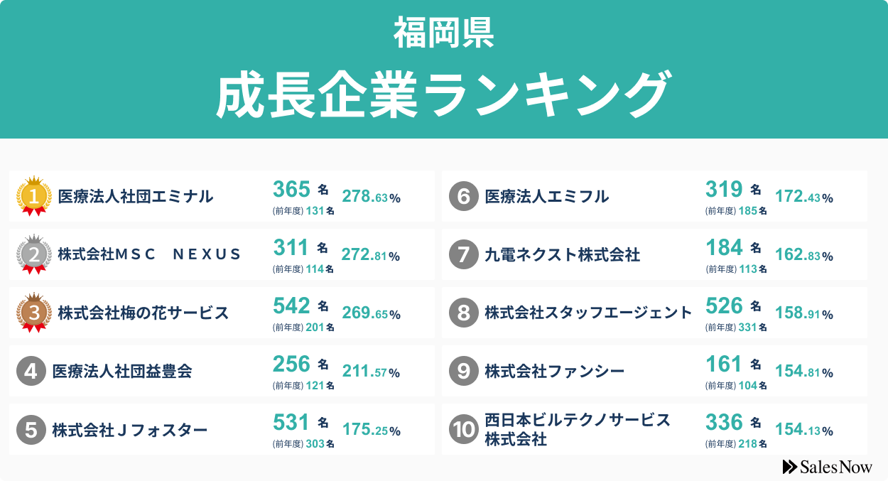 【福岡県】成長企業ランキングTOP50!/SalesNow DBレポート