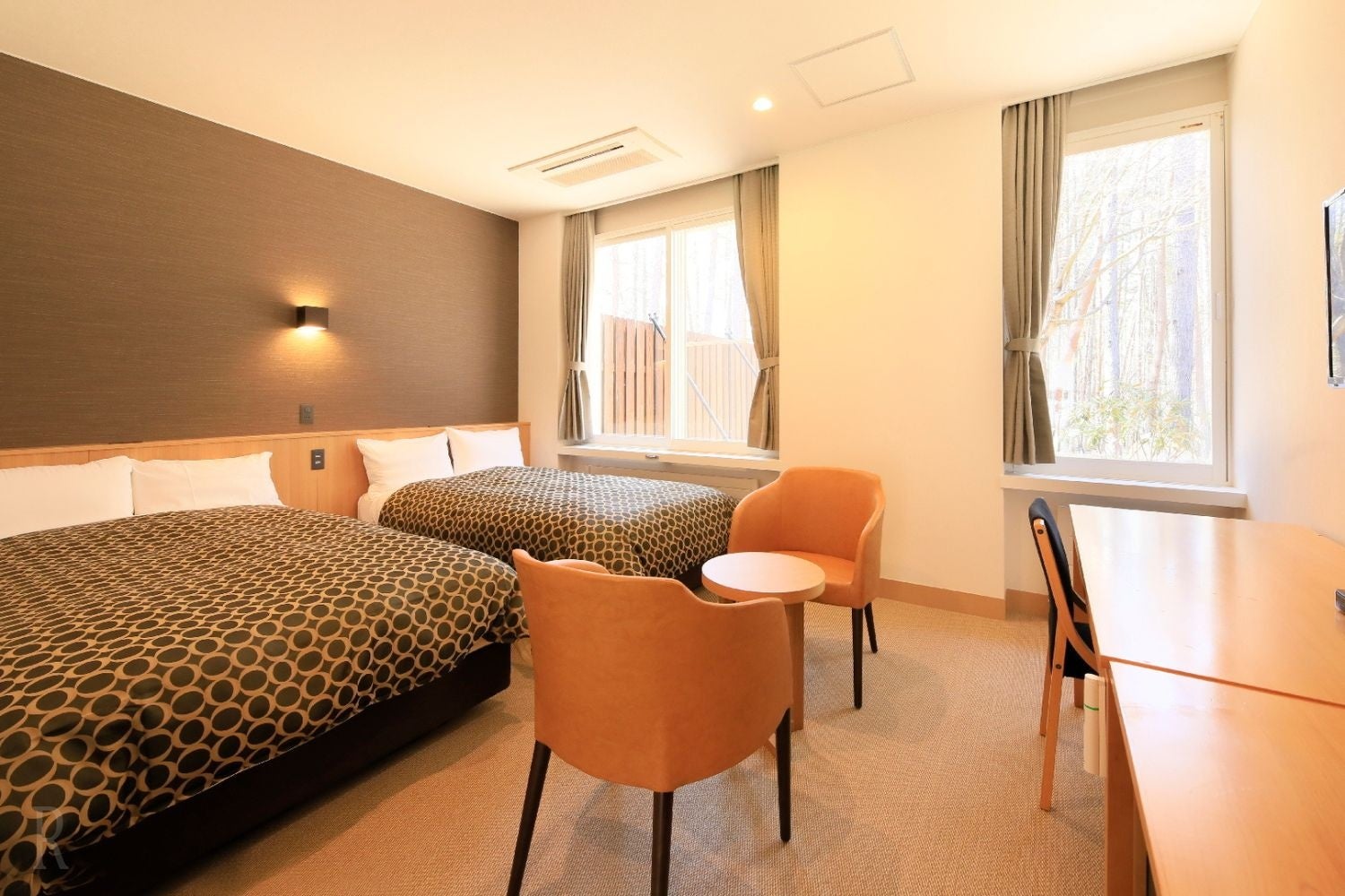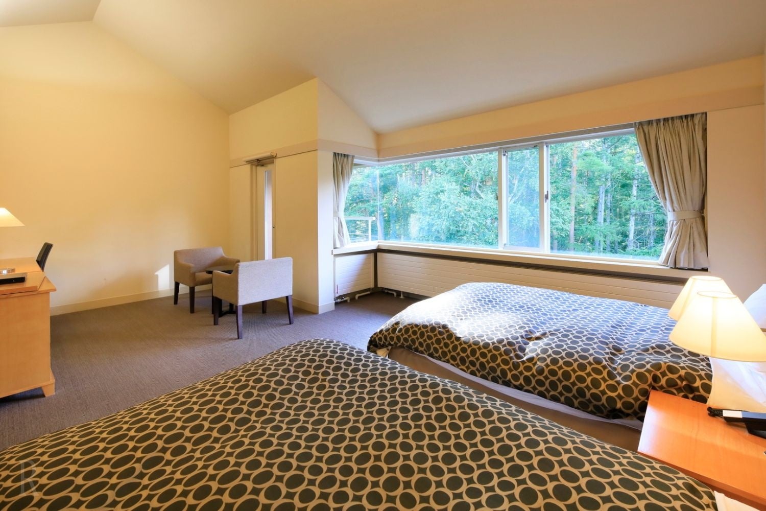 ゆっくりと過ごすのにちょうどよいツインタイプの客室です。窓の外に広がる落葉末の群生林に癒され、安らかな時間をお過ごしいただけます。