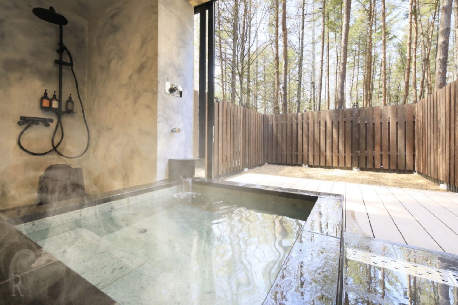 温泉は「武田信玄の隠し湯」として400年以上愛されている蓼科温泉郷のひとつ、尖石温泉を源泉として引いております。肌を滑らかにするクレンジング効果が期待できる美肌湯で、湯上りは爽快感に包まれます。