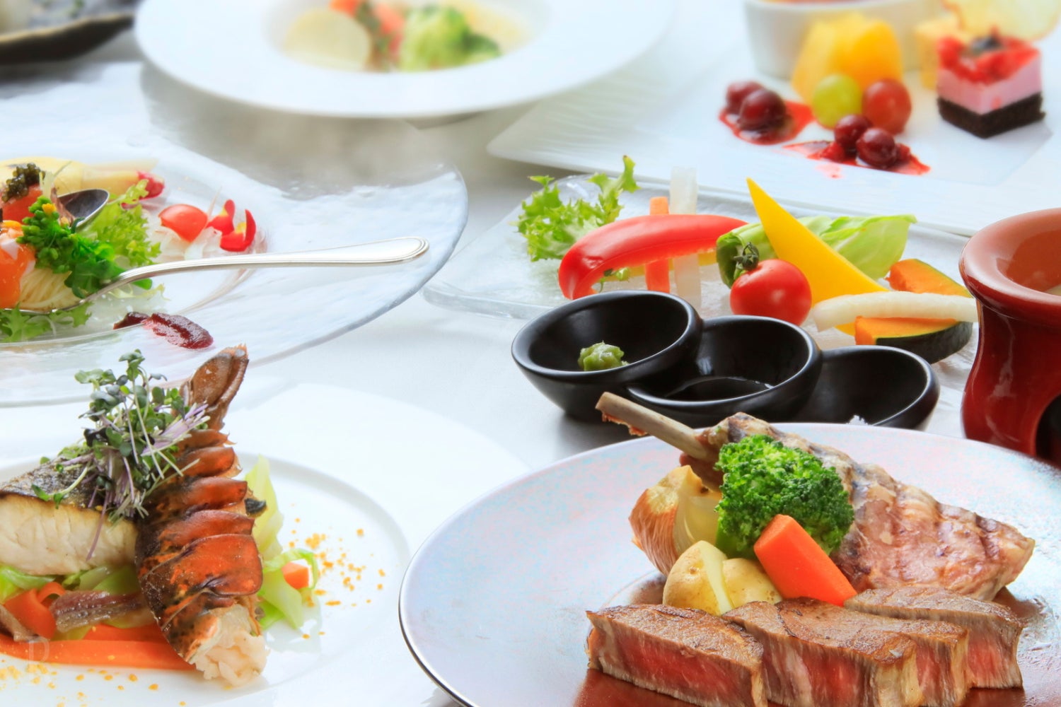 信州の旬の素材を活かしたお料理とともに、調理する音や香りを感じていただくライブキッチンから出来立てのステーキをご提供いたします。四季を表現した繊細で美しいお料理の数々をお愉しみください。