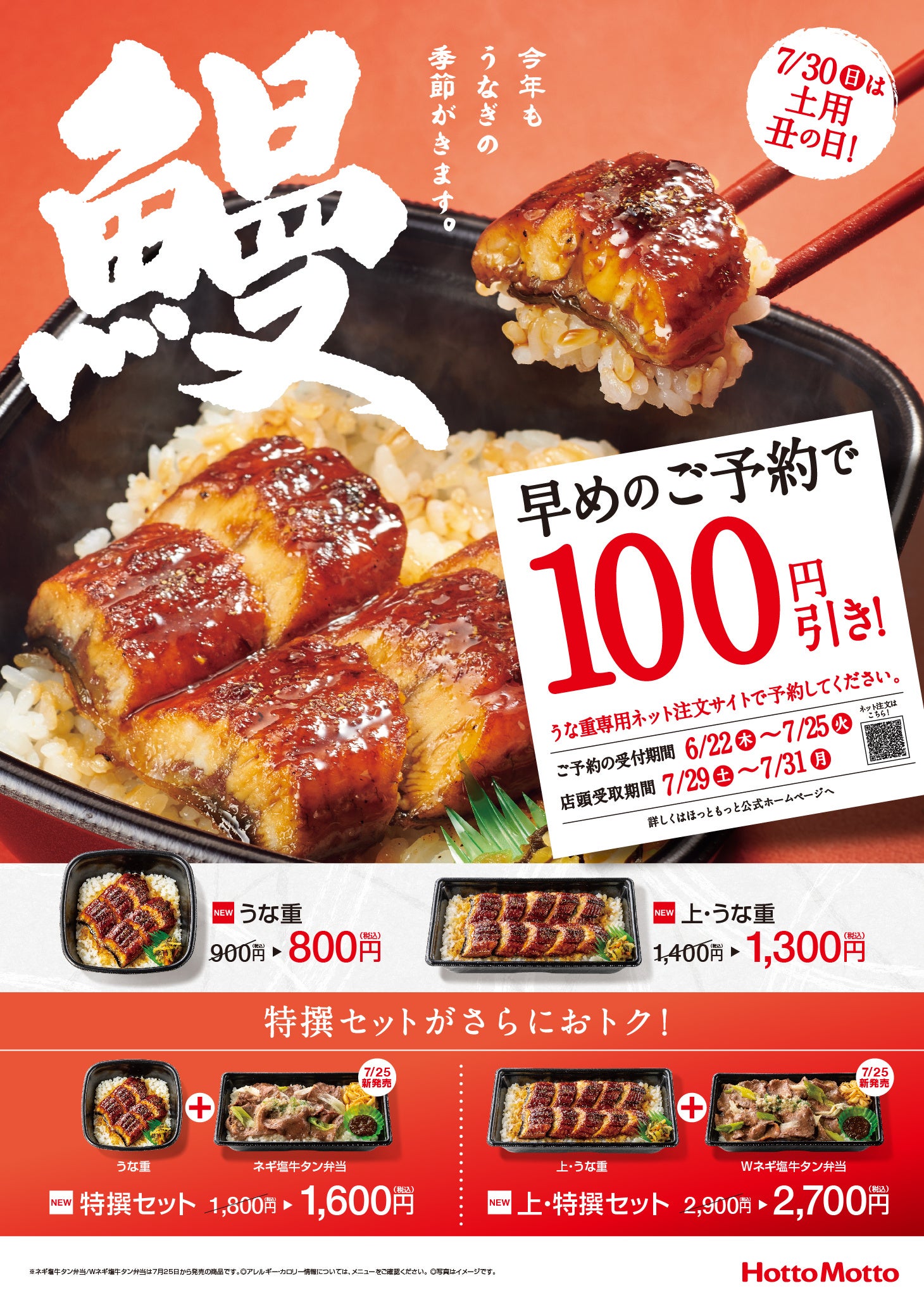 「ほっともっと」今年も登場! 初夏の風物詩 土用の丑の日は「ほっともっと」のうな重! うな重/上・うな重 期間限定発売 事前予約がお得!店頭・ネット予約で100円引き