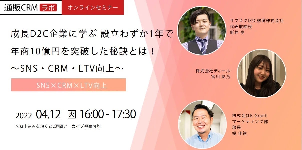 成長D2C企業に学ぶ設立わずか1年で年商10億円を突破した秘訣とは! ~SNS・CRM・LTV向上~