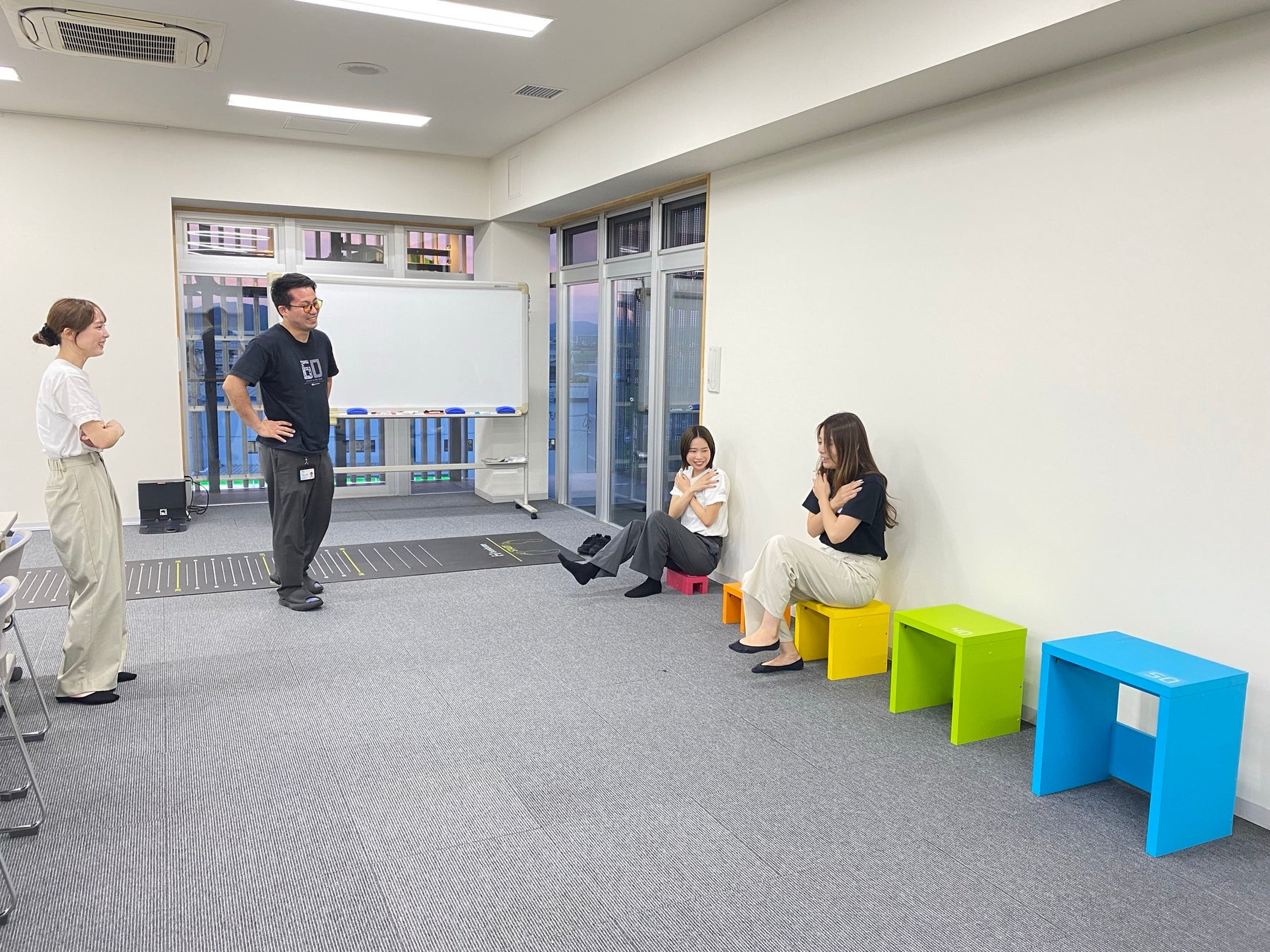 接骨院向けに独自開発した運動器数値化システム「bonbone check」を社内でも活用し、従業員の健康維持・向上に努めています。具体的には、毎月1グループ4~5名に分かれて就業時間内に運動器の状態を測定します。7項目(握力、長座体前屈、立ち上がりなど)を測定し、システムに数値を入力することで運動器年齢が算出されます。毎月測定することで、運動器に対する健康意識を高めています。