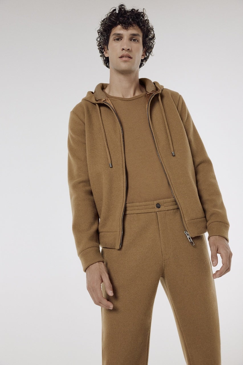 ドライビングやフライトなどの移動やリゾート先には、極上な着心地のエフォートレスなフーディセットアップがおすすめです。