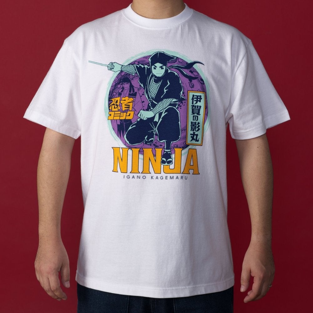 NINJA of NINJAといって過言ナシの影丸をプリントしたTシャツ。現在に至る忍者ヒーローの源流のひとつとも言える名作を着こなそう。