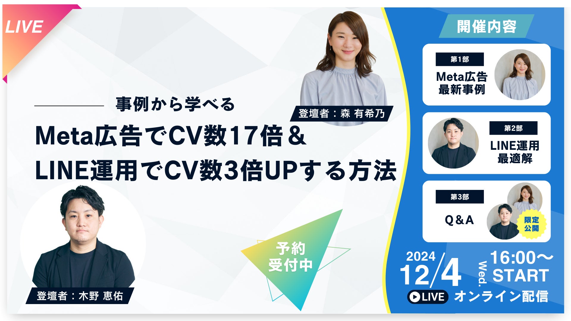 『【事例から学べる】Meta広告でCV数17倍&LINE運用でCV数3倍UPする方法』ウェビナー開催〈無料〉