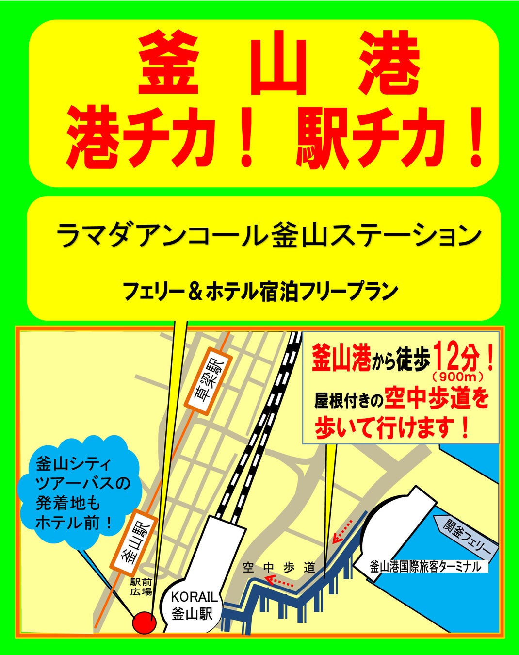 下関港発着 便利で快適なホテルのセットプラン! 釜山港 港チカ!駅チカ! ラマダアンコール釜山ステーション フェリー&ホテル宿泊フリープラン販売開始について