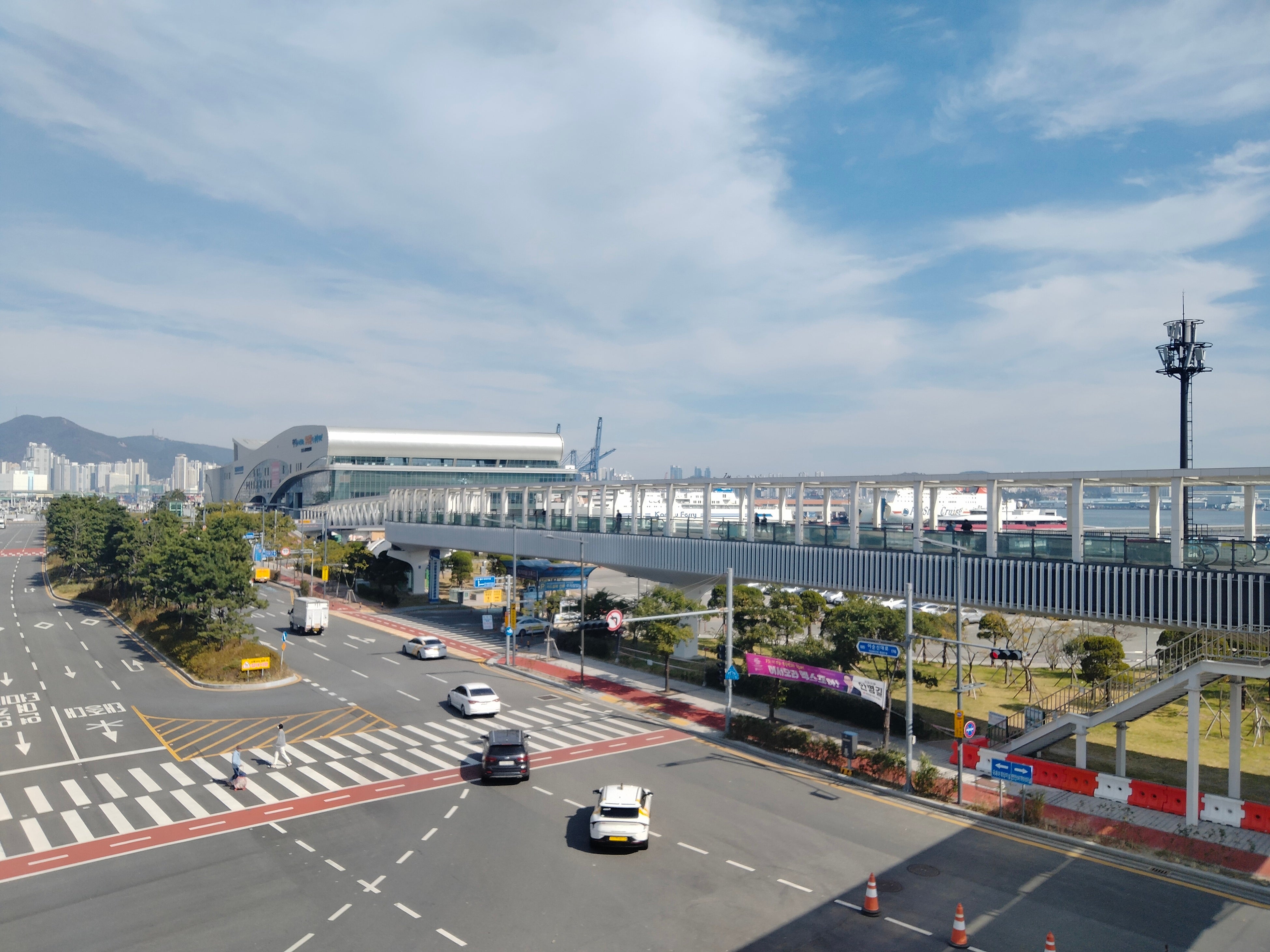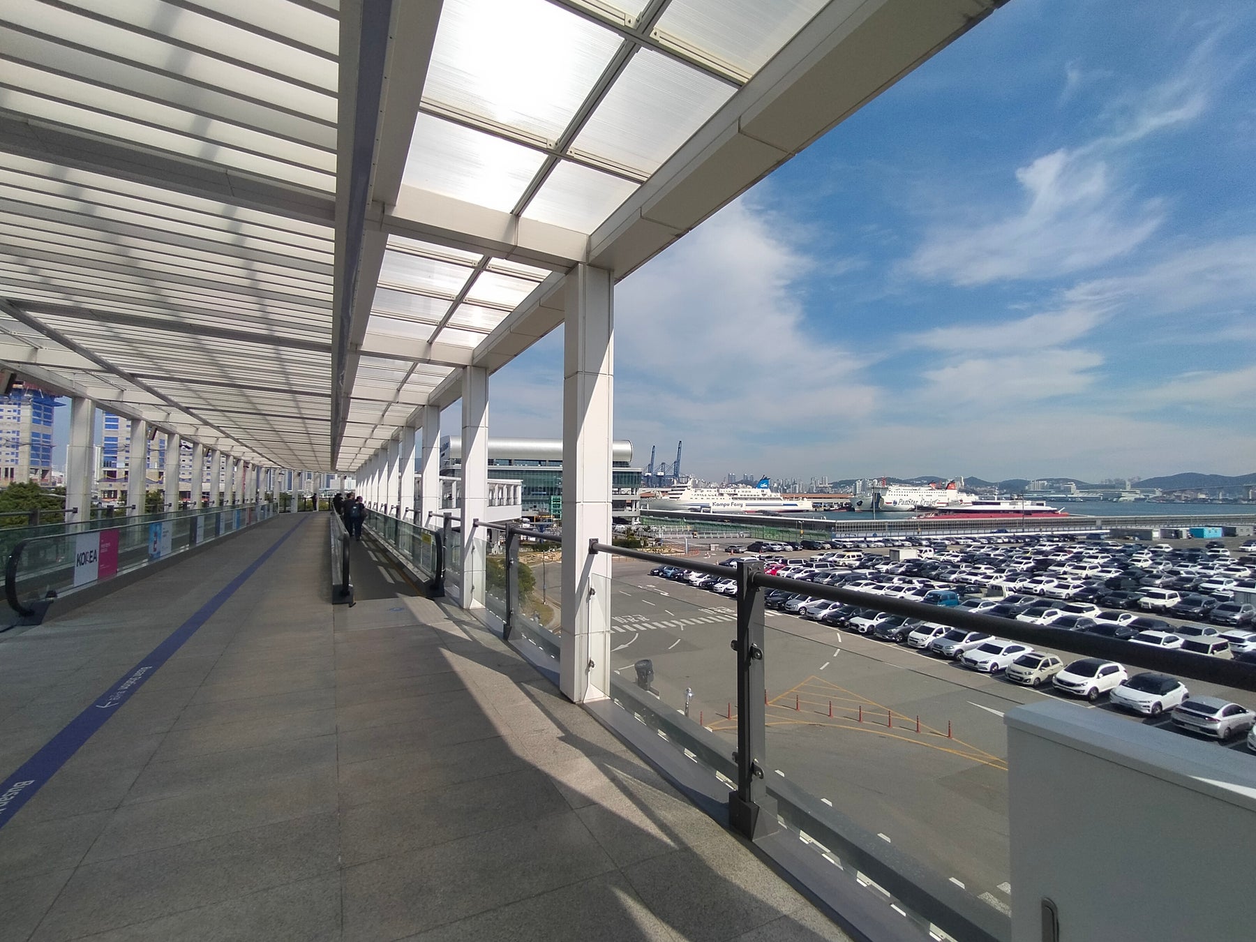 屋根付きの空中歩道で釜山港国際ターミナルと釜山駅周辺地区が直結(動く歩道もあり!!)