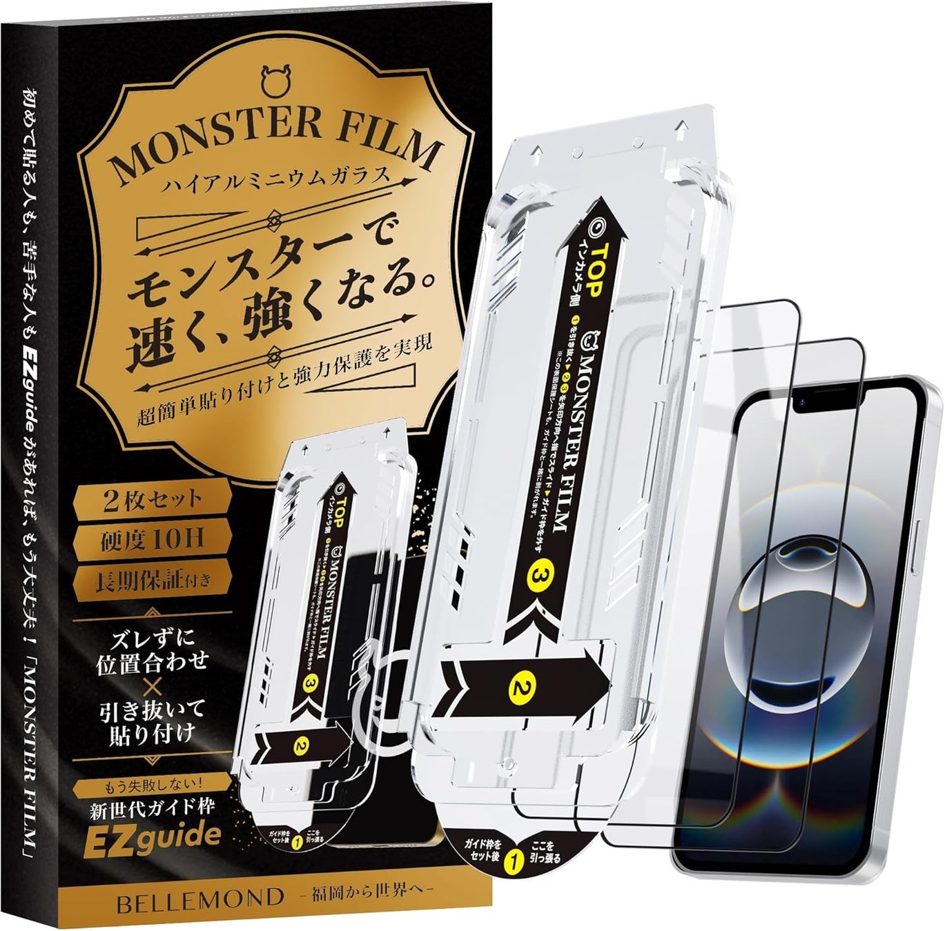 iPhone16e専用画面保護フィルム 簡単に貼れるガイド枠付き「モンスターフィルム」