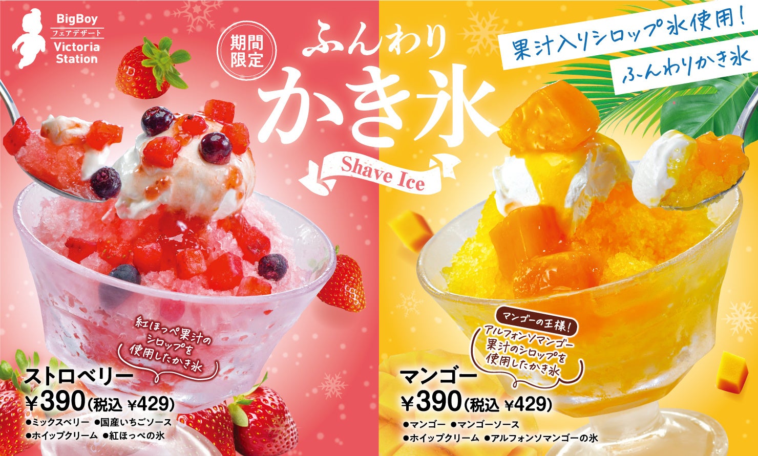 ぜひこの機会に、お近くの「ビッグボーイ」「ヴィクトリアステーション」で食後にぴったりな“ふんわりかき氷”をお楽しみください。