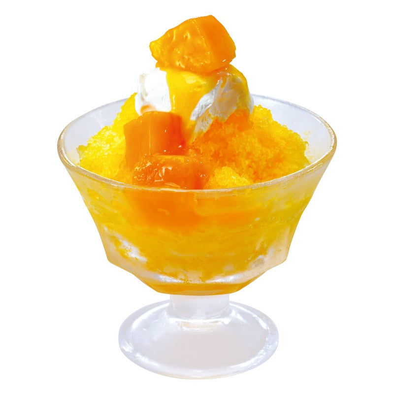 マンゴーの王様と呼ばれる“アルフォンソマンゴー”果汁のシロップを使用したかき氷に、ふわとろのホイップクリームとカットマンゴーをトッピングしました。