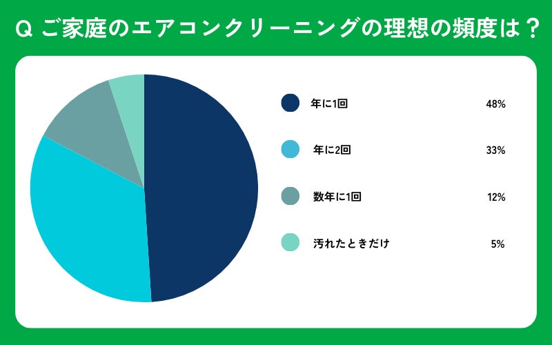 ・家族世帯の理想的なエアコンクリーニングの頻度は「年に1~2回」。