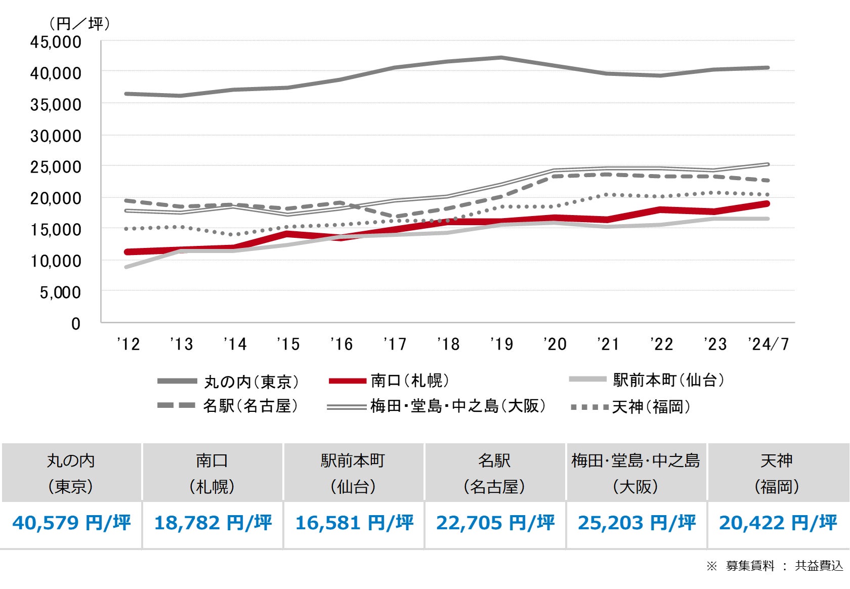 <募集賃料の推移(6大都市 大規模ビル・主要駅前地区)>