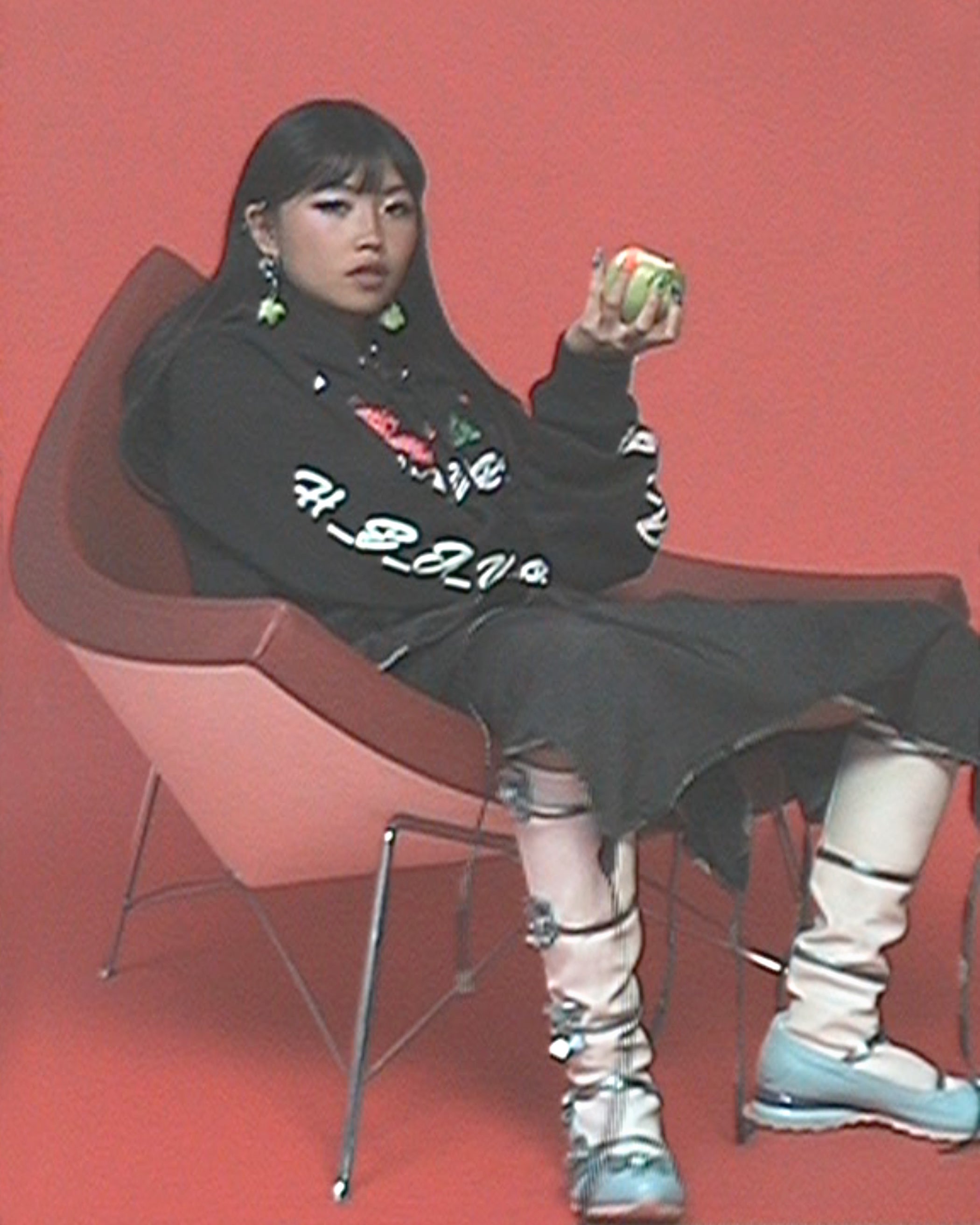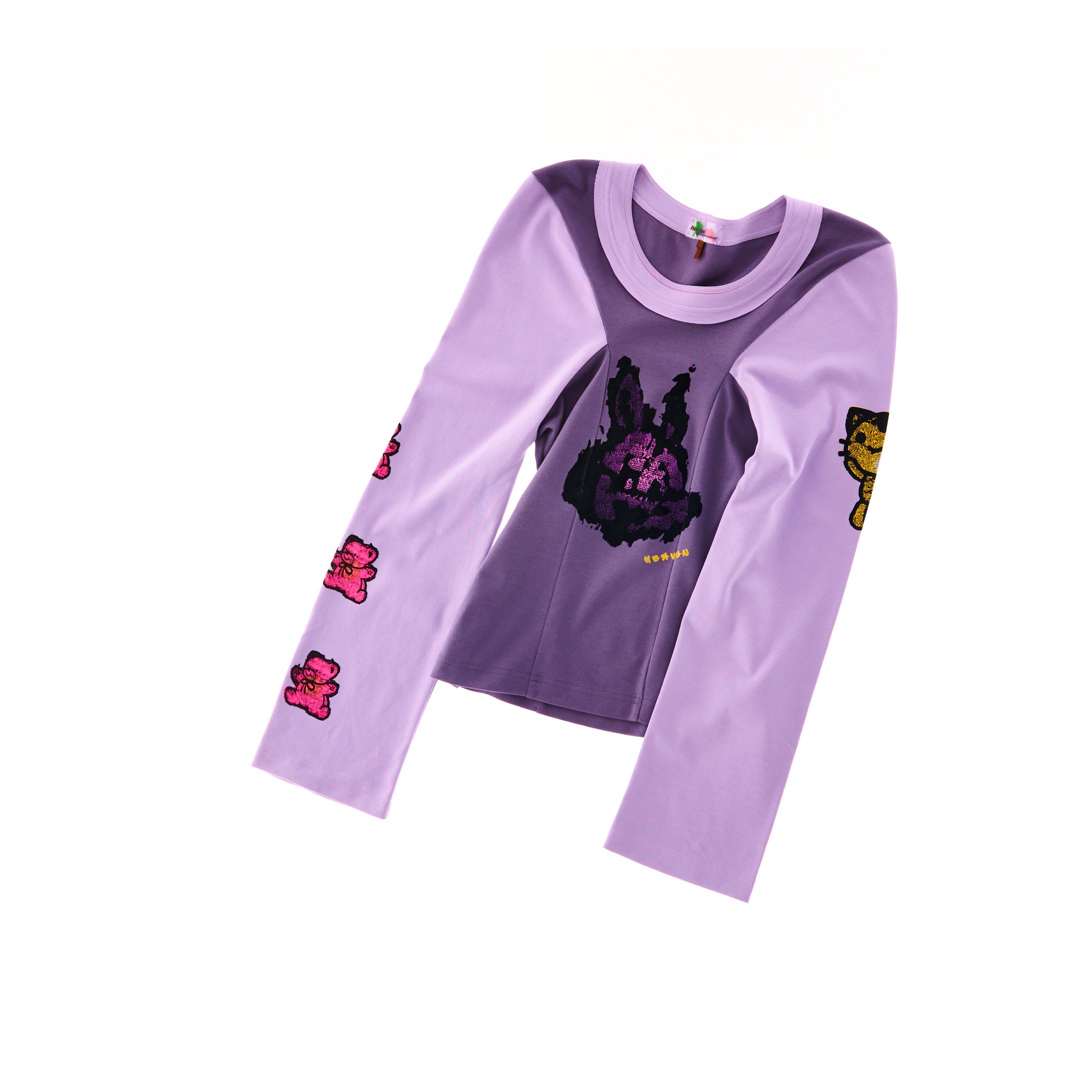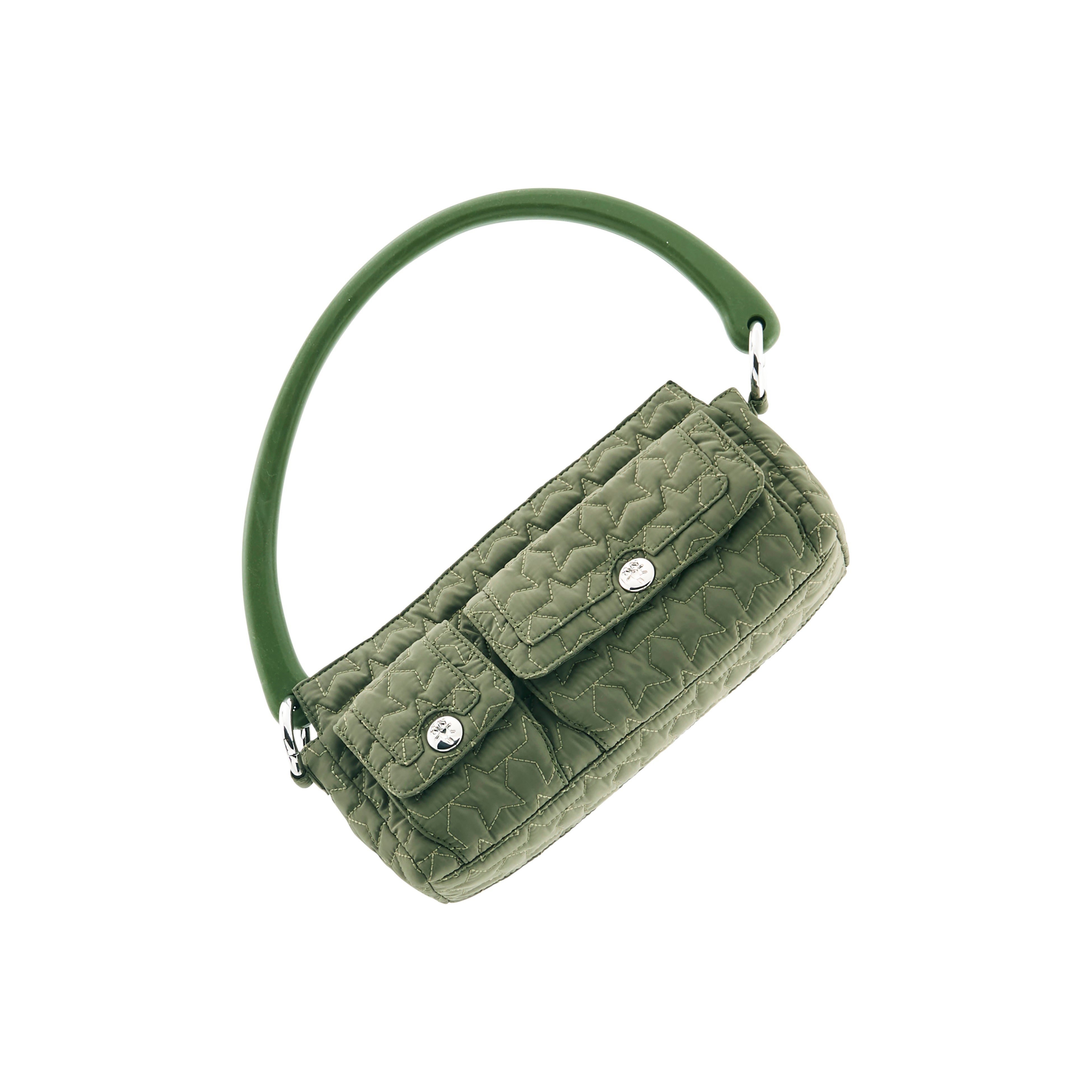 ローラとディアナは、Heavenのシグネチャーであるダブルヘッドベアをビーズリーの作品に置き換え、テディベアやウサギ、「招き猫」といった、若さと変化を象徴する儚いシンボルをパッチングし、Heavenのグラフィックへのアプローチを考えています。このシリーズでは、ニットの手仕事にマクラメビーズを施し、Marc Jacobsのアーカイブからインスピレーションを得ています。姉妹に代表されるミレニアル世代が持つ若さと共鳴し、女性として生きること、また大人になることへの不快感、生々しさ、衝撃的な本質に回帰するものです。アイコニックなHeavenのナイロンパフィバッグは、シリコンの持ち手で分けられるようになっており、過去のMarc Jacobsのシリーズよりボディと象徴的なダブルポケットを引用しています。