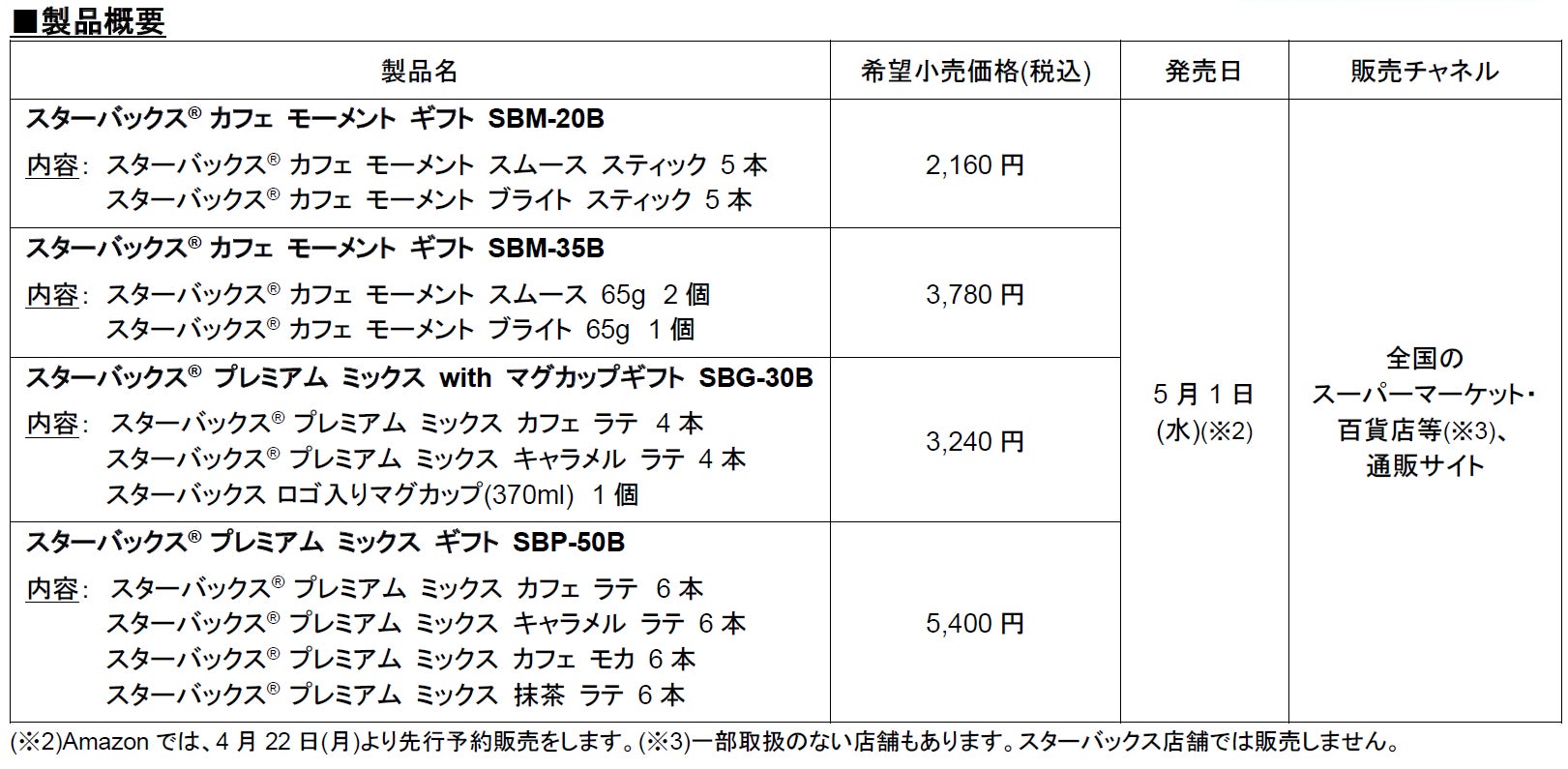 「スターバックス® カフェ モーメント」など4製品を新発売し、「スターバックス® ギフト」がラインアップを拡充