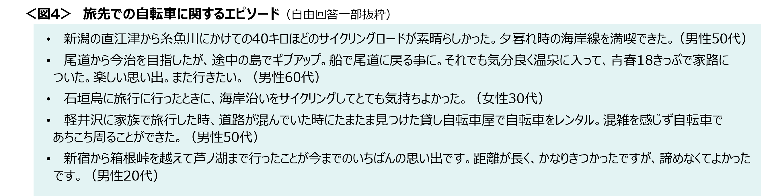 □旅先で自転車に乗る目的・楽しみ