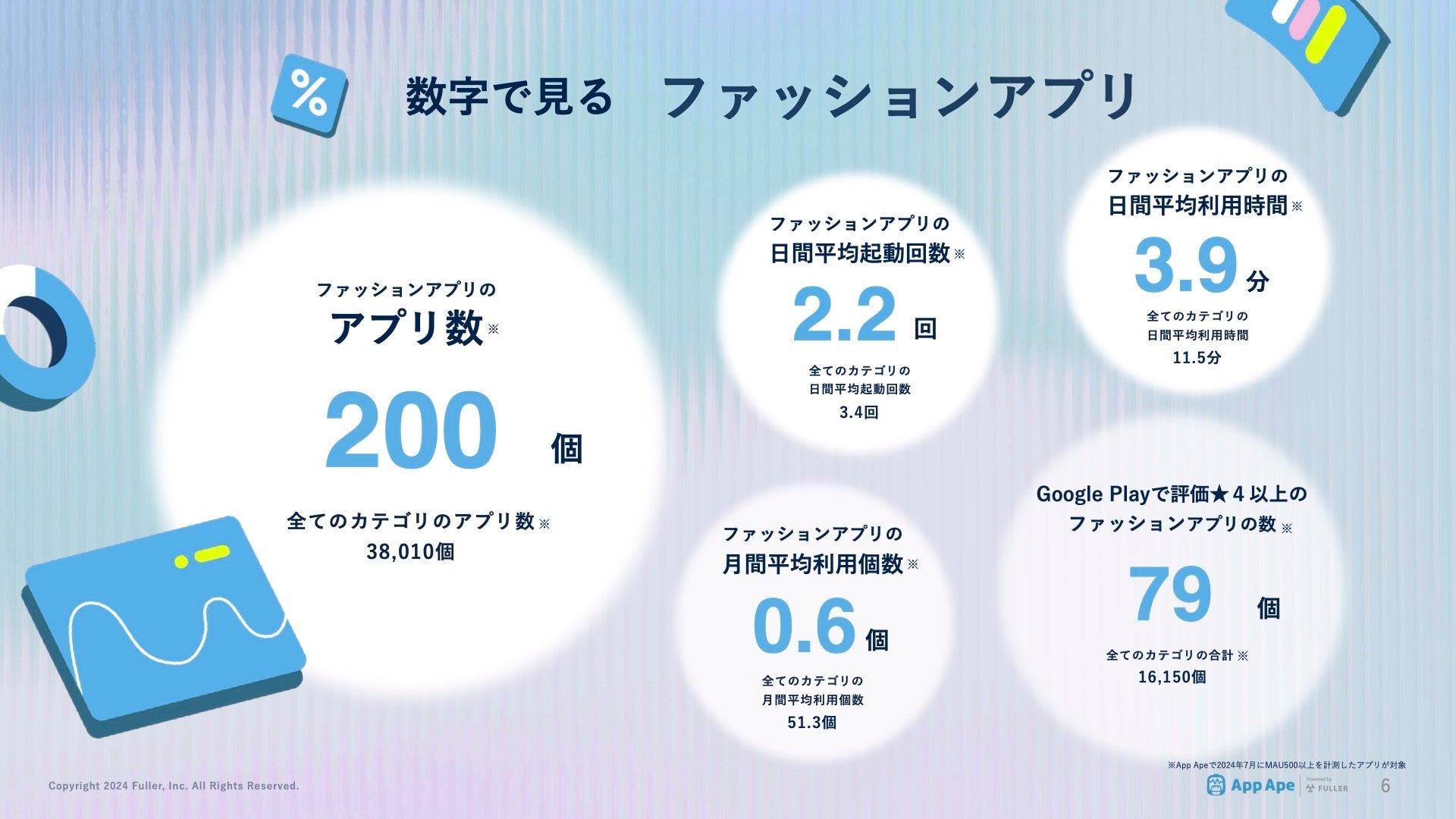 ファッションアプリのアプリ数、起動回数、利用時間などの基本データをまとめました。