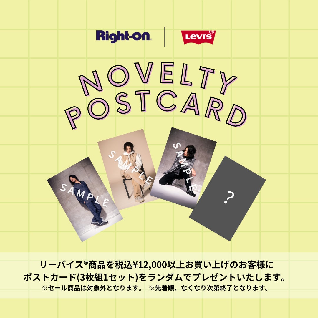 全国のライトオン店舗・ライトオン オンラインショップにて、リーバイス®の商品を税込¥12,000以上お買い上げのお客様を対象に、ノベルティポストカード(3枚組1セット)を配布いたします。