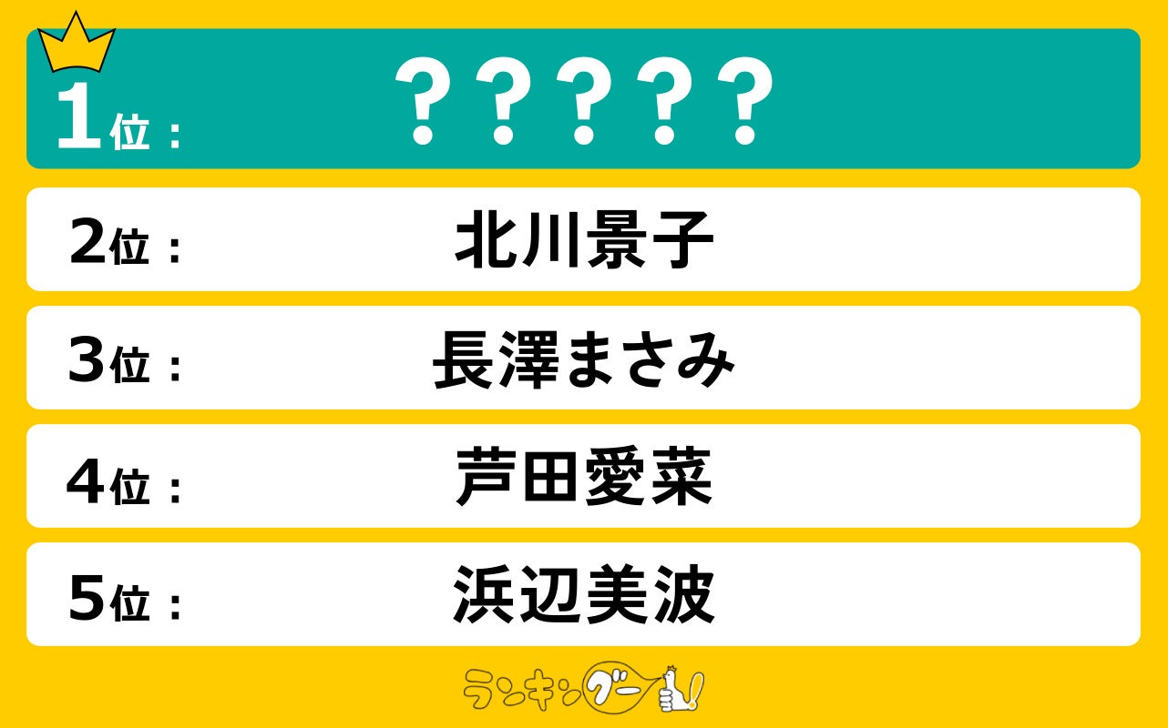 1位は新垣結衣さんに決定!大ヒットドラマ「逃げるは恥だが役に立つ」では、キュート&コミカルな演技で多くの視聴者の心を掴みました。2位はどんな役柄も魅力的に演じる、北川景子さん。3位~5位は僅差で順位が決定しました!3位は圧倒的な表現力に惹かれる、長澤まさみさん。4位は芦田愛菜さん。そして、5位は浜辺美波さんがランクインしました!