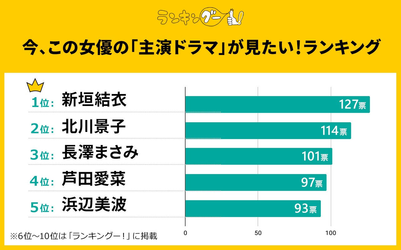 調査方法:株式会社CMサイトがインターネットリサーチした<今、この女優の「主演ドラマ」が見たい!ランキング>のアンケート結果を集計。