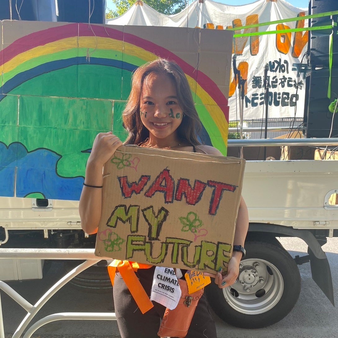 高校2年生。2021年のCOP26やグレタ・トゥーンベリさんによる2018年の学校ストライキをきっかけに始まった、気候危機対策を求める運動Fridays For Future Japanに参加。