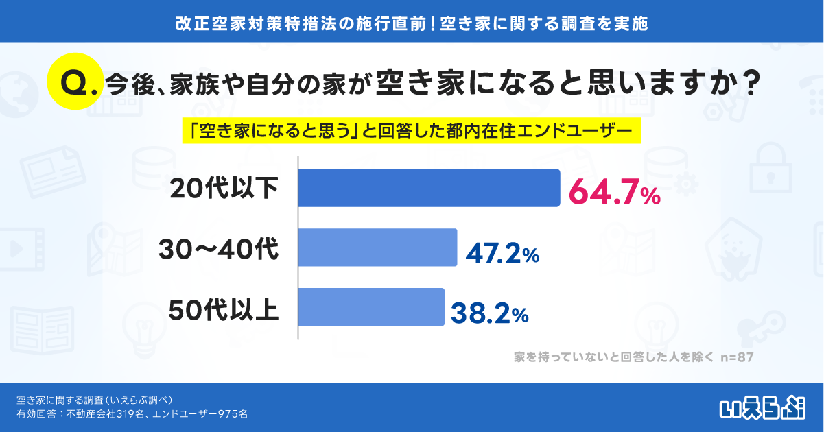 空き家の発生予測、世代で差!都内の20代以下64.7%が「空き家になる」と回答、50代以上は38.2%