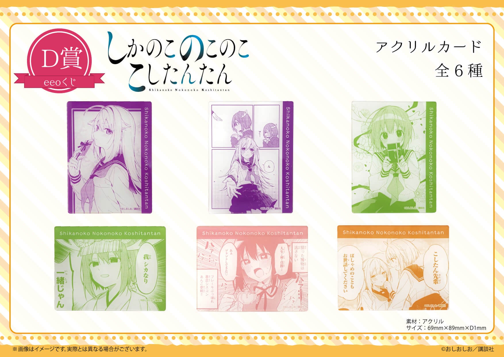 おしおしお先生が手掛けるキュートなイラスト、そして独特の世界観があふれ出す作中のシーンを使用して豪華景品が勢ぞろいした『しかのこのこのここしたんたん』の「eeoくじ」。