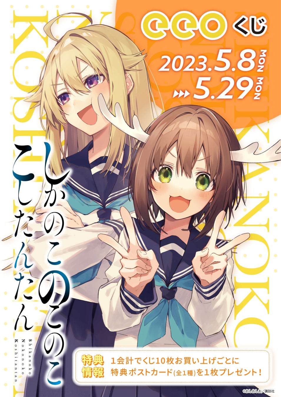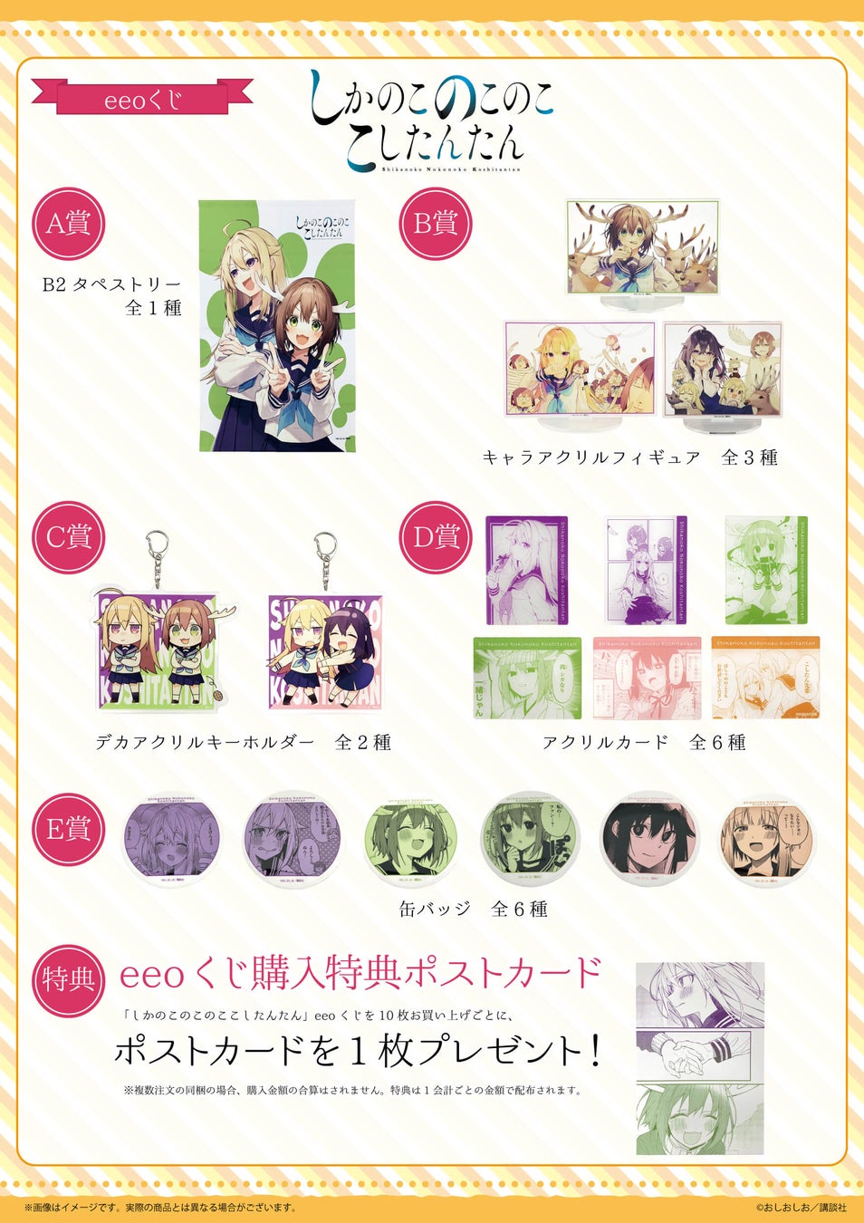 「少年マガジンエッジ」で連載中の大人気コミックス『しかのこのこのここしたんたん』のオンラインくじ「eeoくじ」が、現在eeo Store(通販)で販売中です!