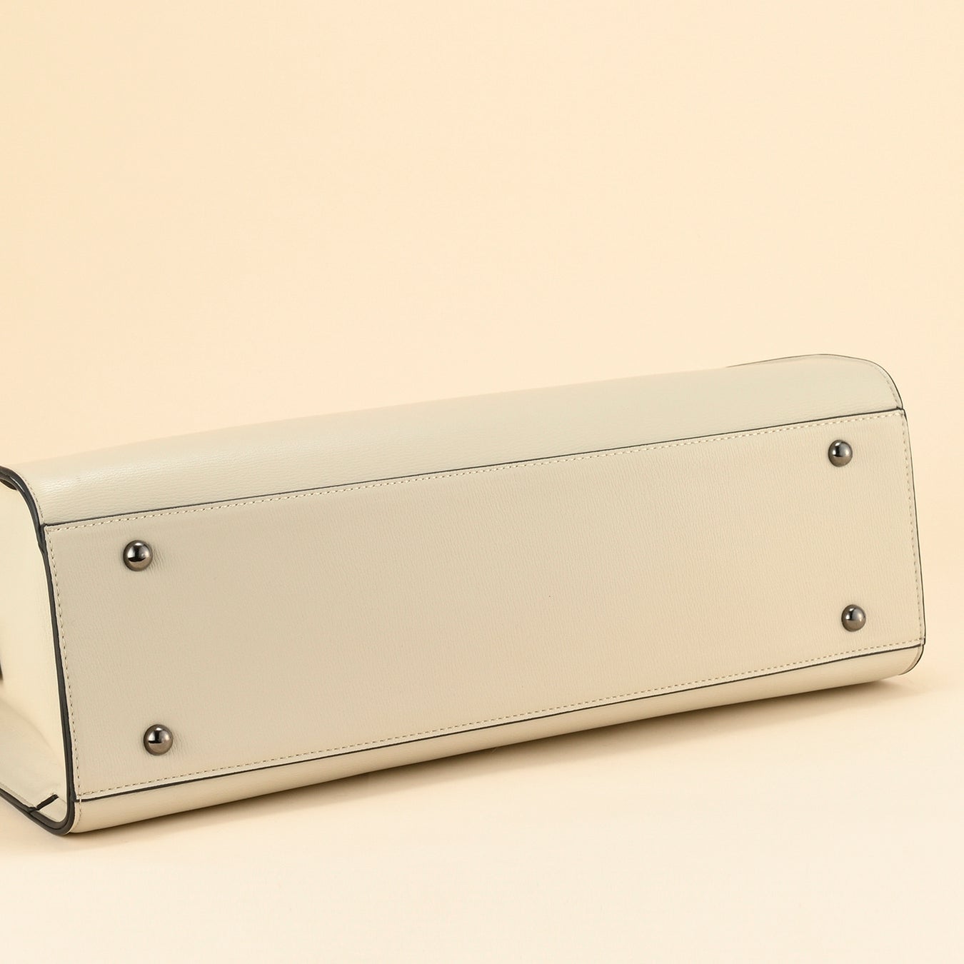 バッグを置いた際に自立しやすいよう、底板と底鋲がついています。