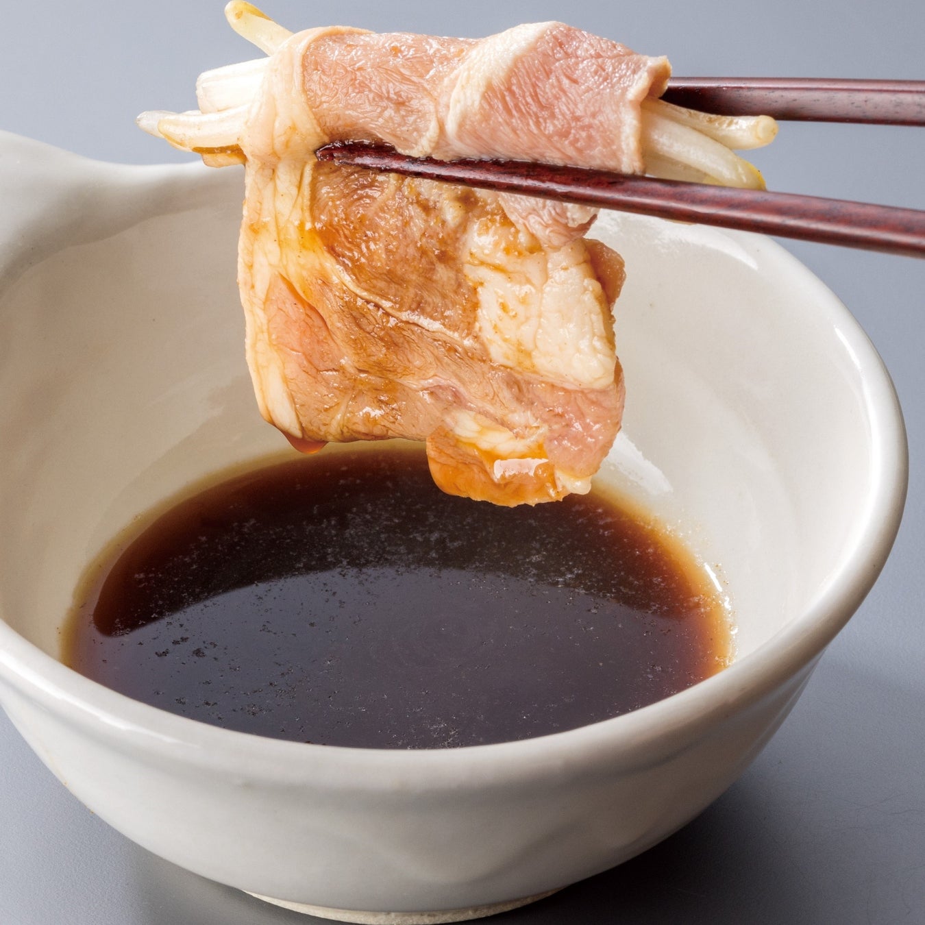 本醸造しょうゆにりんごや香味野菜、香辛料をブレンドし本場の味を再現。甘さを抑え、すっきりした味わいのつけだれです。すりおろしにんにく、ごま、ネギみじんぎりなどでアレンジするのもおすすめです。