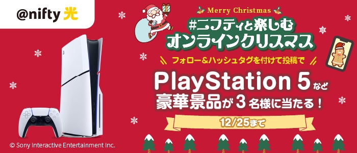 ニフティ、「#ニフティと楽しむオンラインクリスマス」キャンペーンを実施~SNSにクリスマス写真を投稿すると抽選で3名様に豪華賞品が当たります~
