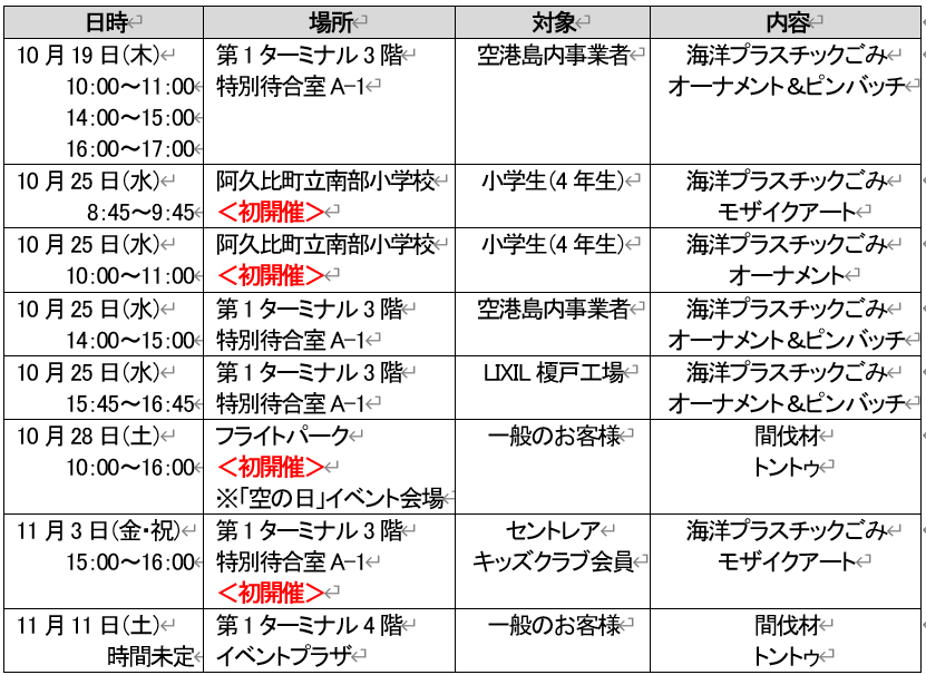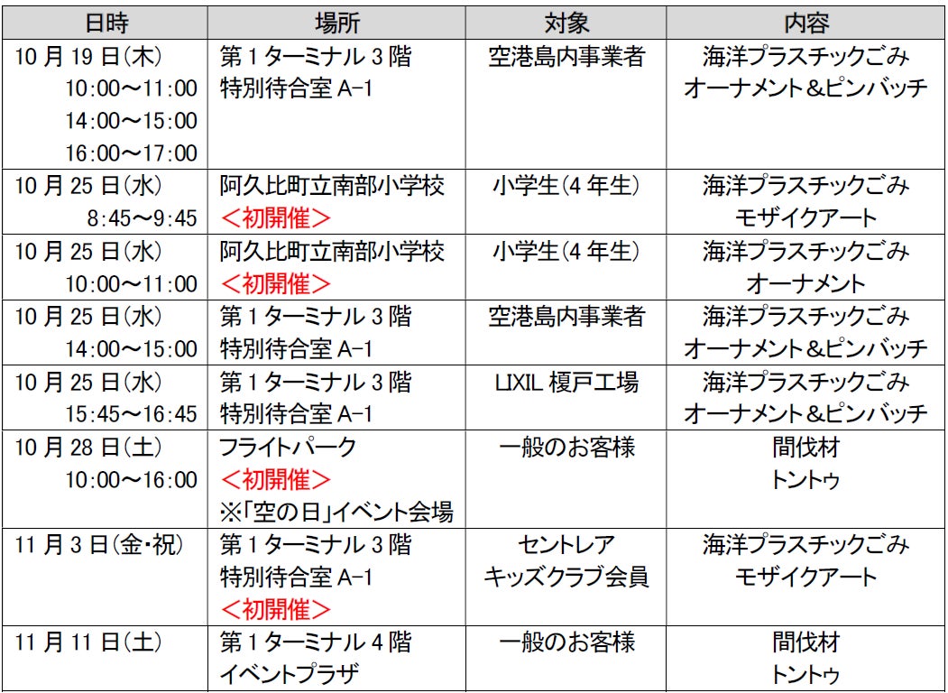 昨年度も実施した空港島内事業者・地元企業だけでなく、新たに知多半島の小学校への出張ワークショップや一般のお客様を対象としたワークショップも開催します。
