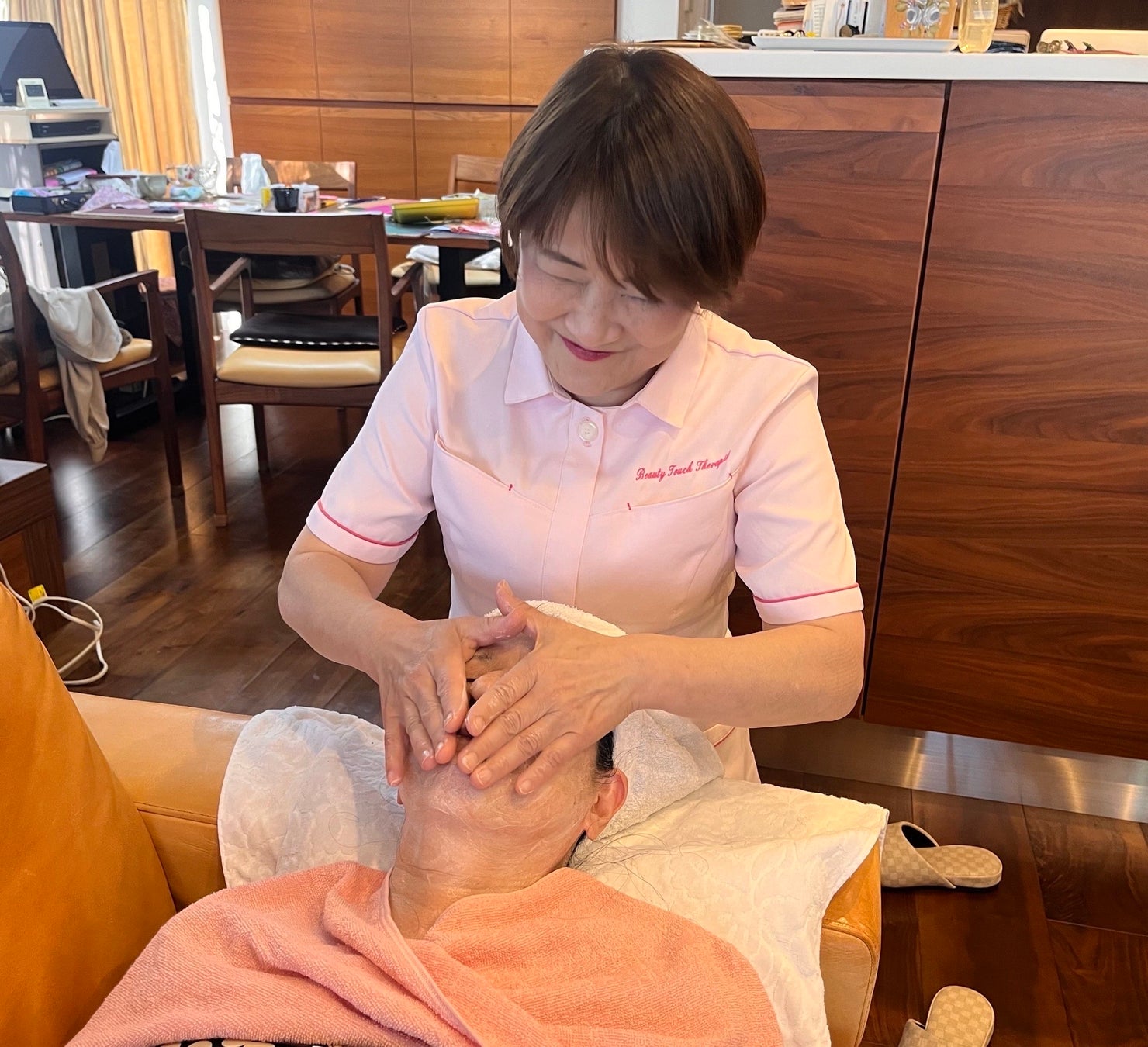 自営の接骨院でエステティック施術をしていましたが、接骨院をデイサービスにしたことをきっかけに高齢者との接し方を学ぶために受講しました。現在ではデイサービスでの定期的なセラピーに加えて個人宅への訪問セラピーや自宅サロンでの送迎付きエステ+介護美容サービスも実施。活動を支えるのは「小さな喜びの積み重ねが心の安定につながる〝心の栄養になりたい“」という思いです。「何歳になっても自分らしくいられる美容」が、特別なものでなく当たり前のサービスとして誰もが受け入れられるような環境が整うことや、私自身も持続的にセラピー活動を継続できるように願っています。
