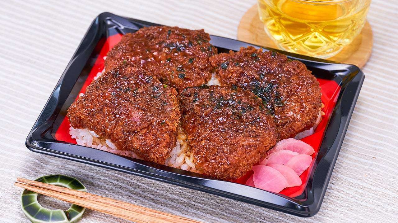 新潟県のソウルフード「たれカツ丼」を発売。4つの食べやすいサイズに切り分けた薄切りローストンカツを特製の甘辛いタレで仕上げました。サラダやスープなどと一緒にどうぞ。